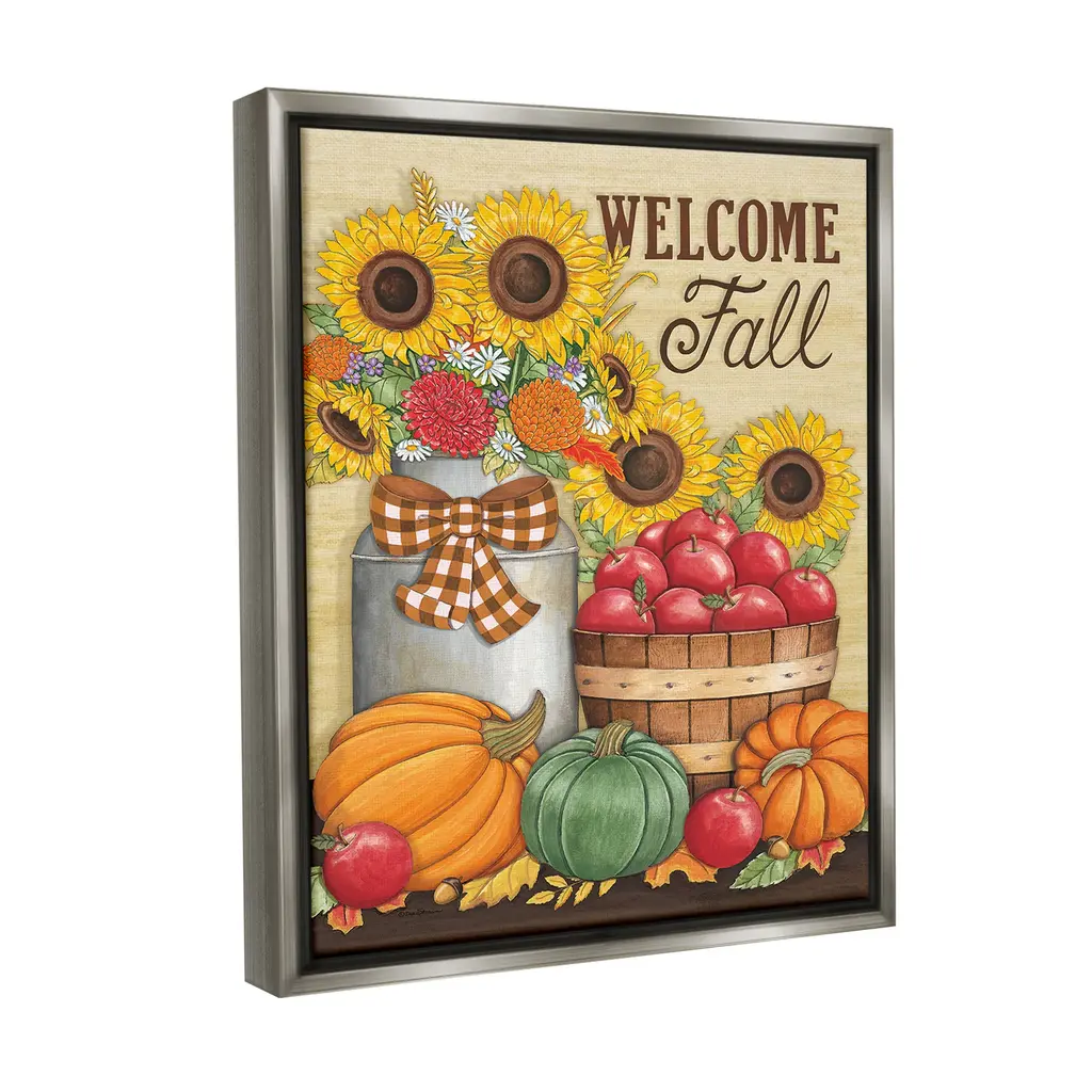 Stupell Fall Harvest Welcome Phrase Framed Floater Canvas Wall Art Design By Deb Strain - 17 X 21 - Grey