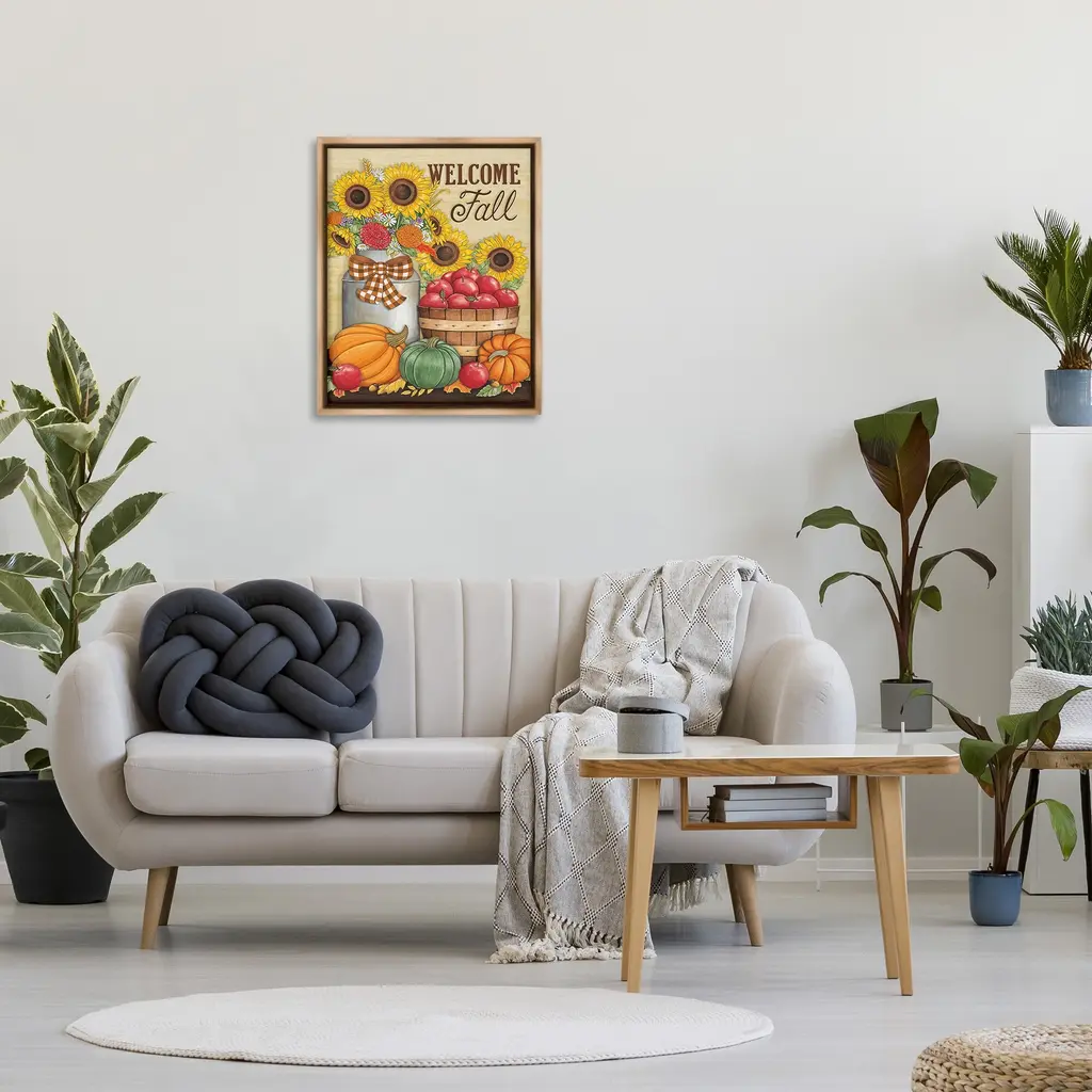 Elevate your home or office to the next level with Stupell Framed Floating Canvas Wall Art. Our premium hand-stretched canvas is mounted securely into a sturdy lightweight frame. The museum-style gap between the wrapped canvas and the box frame gives the illusion of floating artwork. Stupell Wall Art is made in the USA.Features: Dimensions: 17 x 1.7 x 21 Frame, 16 x 1.5 x 20 Canvas ArtFloating Frame Canvas Products are available in sizes 17"x21" and 25"x31". All Floating Frame Canvas Products have a 1.7" Depth.Wall Art is Ready to Hang with Hardware Free Hanging. No Installation required. For Easy Set Up Lean or Layer Artwork on Shelf or Against Wall. Artwork is Permently Fixed into the Frame.Our elevated 1.7" Thick Floating Frame is the perfect complement to our canvas style Wall Art. We use only the highest quality inks in house with industry leading printing solutions. Canvas is hand stretched over a durable wood foundation and then mounted securly into a Modern Box Frame. Made in the USA.Artwork Relates To: Flower, Plant, Sunflower, Food, Produce, Pumpkin, Vegetable, Countryside, Farm, Harvest, Nature, Apple, Fall, Autumn, Plaid, Welcome FallDesign by Deb Strain