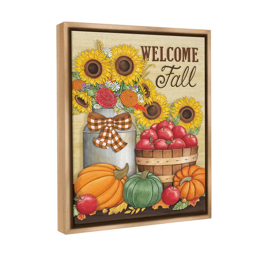 Stupell Fall Harvest Welcome Phrase Framed Floater Canvas Wall Art Design By Deb Strain - 25 X 31 - Brown
