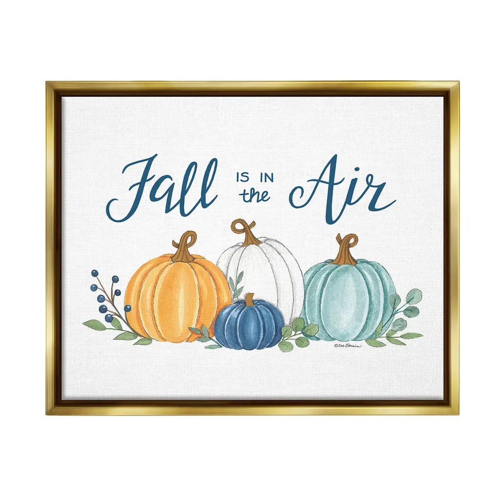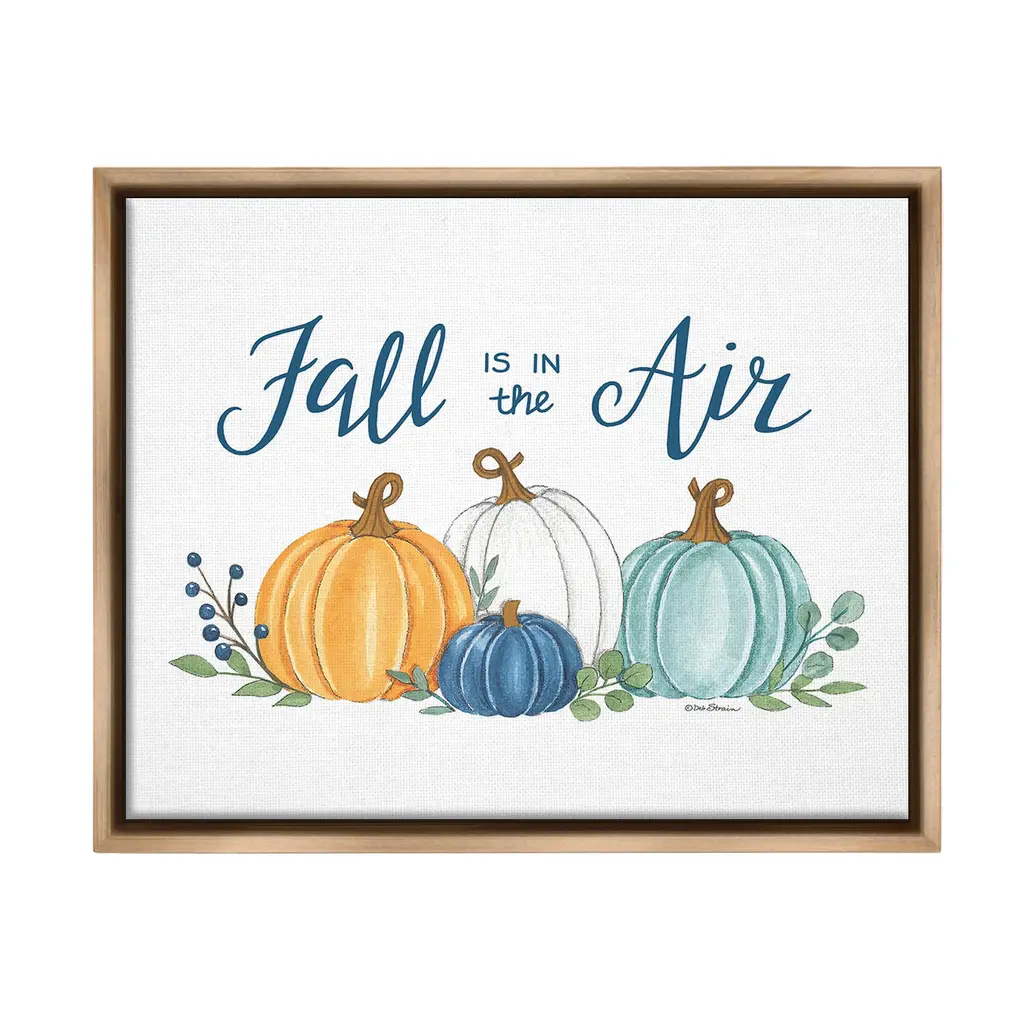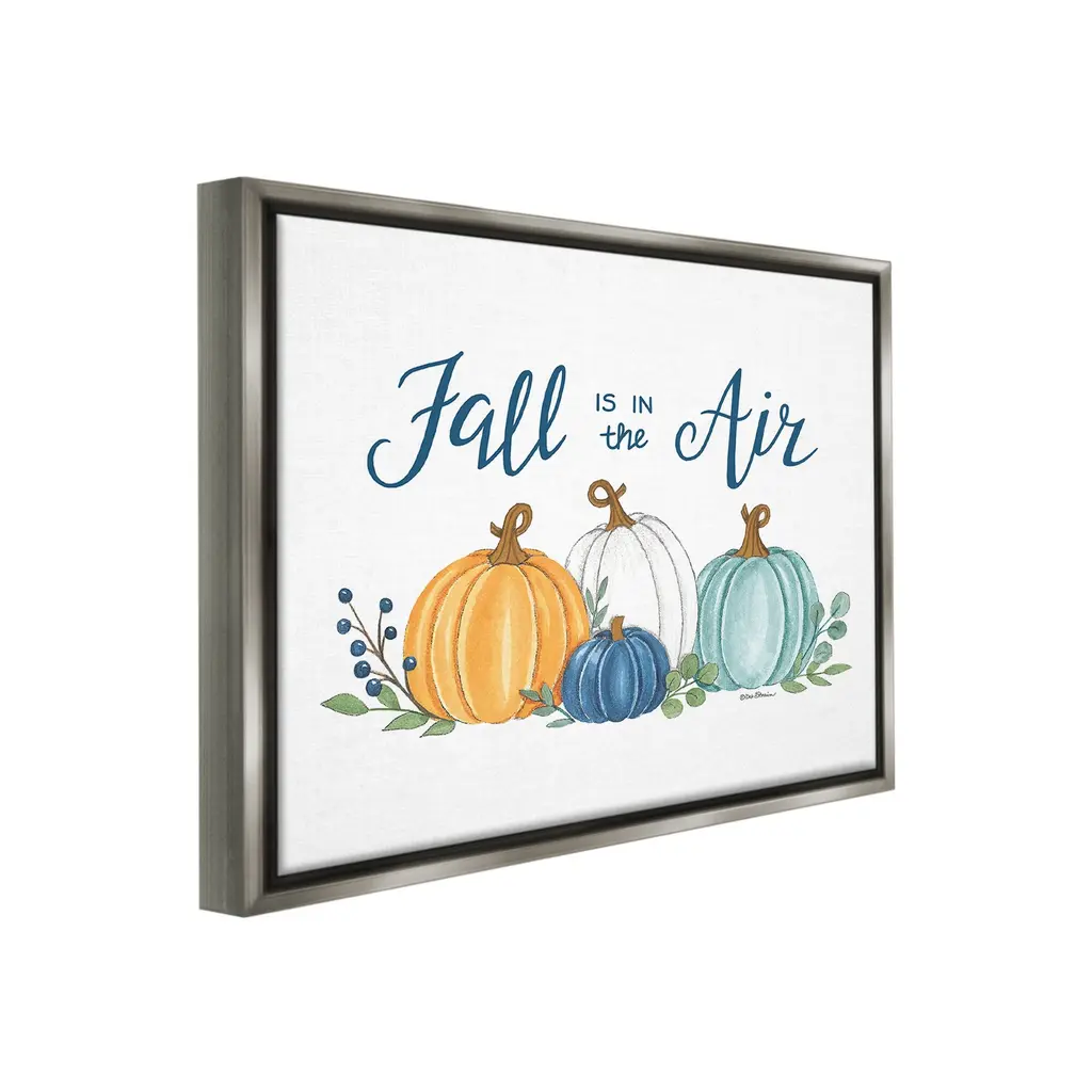 Elevate your home or office to the next level with Stupell Framed Floating Canvas Wall Art. Our premium hand-stretched canvas is mounted securely into a sturdy lightweight frame. The museum-style gap between the wrapped canvas and the box frame gives the illusion of floating artwork. Stupell Wall Art is made in the USA.Features: Dimensions: 21 x 1.7 x 17 Frame, 20 x 1.5 x 16 Canvas ArtFloating Frame Canvas Products are available in sizes 21"x17" and 31"x25". All Floating Frame Canvas Products have a 1.7" Depth.Wall Art is Ready to Hang with Hardware Free Hanging. No Installation required. For Easy Set Up Lean or Layer Artwork on Shelf or Against Wall. Artwork is Permently Fixed into the Frame.Our elevated 1.7" Thick Floating Frame is the perfect complement to our canvas style Wall Art. We use only the highest quality inks in house with industry leading printing solutions. Canvas is hand stretched over a durable wood foundation and then mounted securly into a Modern Box Frame. Made in the USA.Artwork Relates To: Nature, Country, Harvest, Plant, Fall, Autumn, Pumpkin, Phrase, Fall is in the AirDesign by Deb Strain