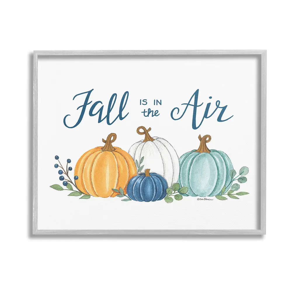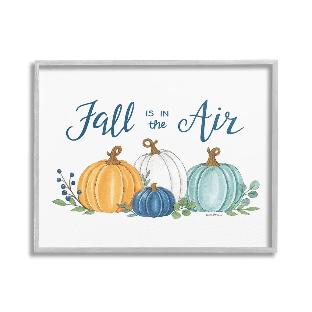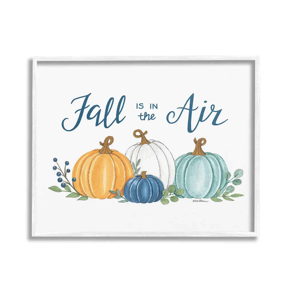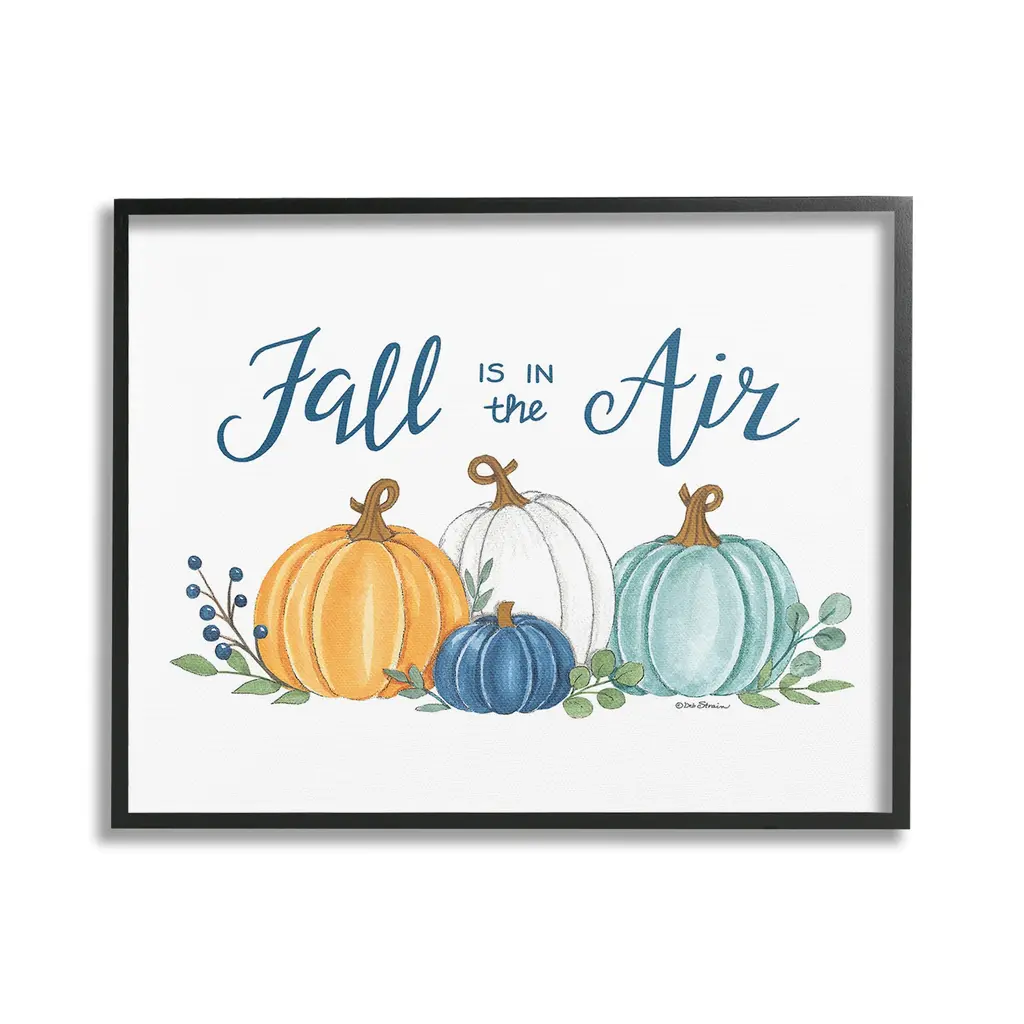 Elevate your home or office to the next level with Stupell Framed Floating Canvas Wall Art. Our premium hand-stretched canvas is mounted securely into a sturdy lightweight frame. The museum-style gap between the wrapped canvas and the box frame gives the illusion of floating artwork. Stupell Wall Art is made in the USA.Features: Dimensions: 21 x 1.7 x 17 Frame, 20 x 1.5 x 16 Canvas ArtFloating Frame Canvas Products are available in sizes 21"x17" and 31"x25". All Floating Frame Canvas Products have a 1.7" Depth.Wall Art is Ready to Hang with Hardware Free Hanging. No Installation required. For Easy Set Up Lean or Layer Artwork on Shelf or Against Wall. Artwork is Permently Fixed into the Frame.Our elevated 1.7" Thick Floating Frame is the perfect complement to our canvas style Wall Art. We use only the highest quality inks in house with industry leading printing solutions. Canvas is hand stretched over a durable wood foundation and then mounted securly into a Modern Box Frame. Made in the USA.Artwork Relates To: Nature, Country, Harvest, Plant, Fall, Autumn, Pumpkin, Phrase, Fall is in the AirDesign by Deb Strain