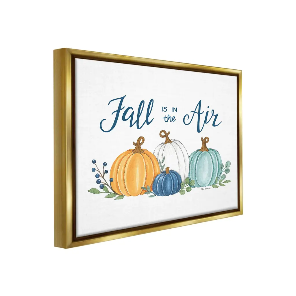 Elevate your home or office to the next level with Stupell Framed Floating Canvas Wall Art. Our premium hand-stretched canvas is mounted securely into a sturdy lightweight frame. The museum-style gap between the wrapped canvas and the box frame gives the illusion of floating artwork. Stupell Wall Art is made in the USA.Features: Dimensions: 21 x 1.7 x 17 Frame, 20 x 1.5 x 16 Canvas ArtFloating Frame Canvas Products are available in sizes 21"x17" and 31"x25". All Floating Frame Canvas Products have a 1.7" Depth.Wall Art is Ready to Hang with Hardware Free Hanging. No Installation required. For Easy Set Up Lean or Layer Artwork on Shelf or Against Wall. Artwork is Permently Fixed into the Frame.Our elevated 1.7" Thick Floating Frame is the perfect complement to our canvas style Wall Art. We use only the highest quality inks in house with industry leading printing solutions. Canvas is hand stretched over a durable wood foundation and then mounted securly into a Modern Box Frame. Made in the USA.Artwork Relates To: Nature, Country, Harvest, Plant, Fall, Autumn, Pumpkin, Phrase, Fall is in the AirDesign by Deb Strain
