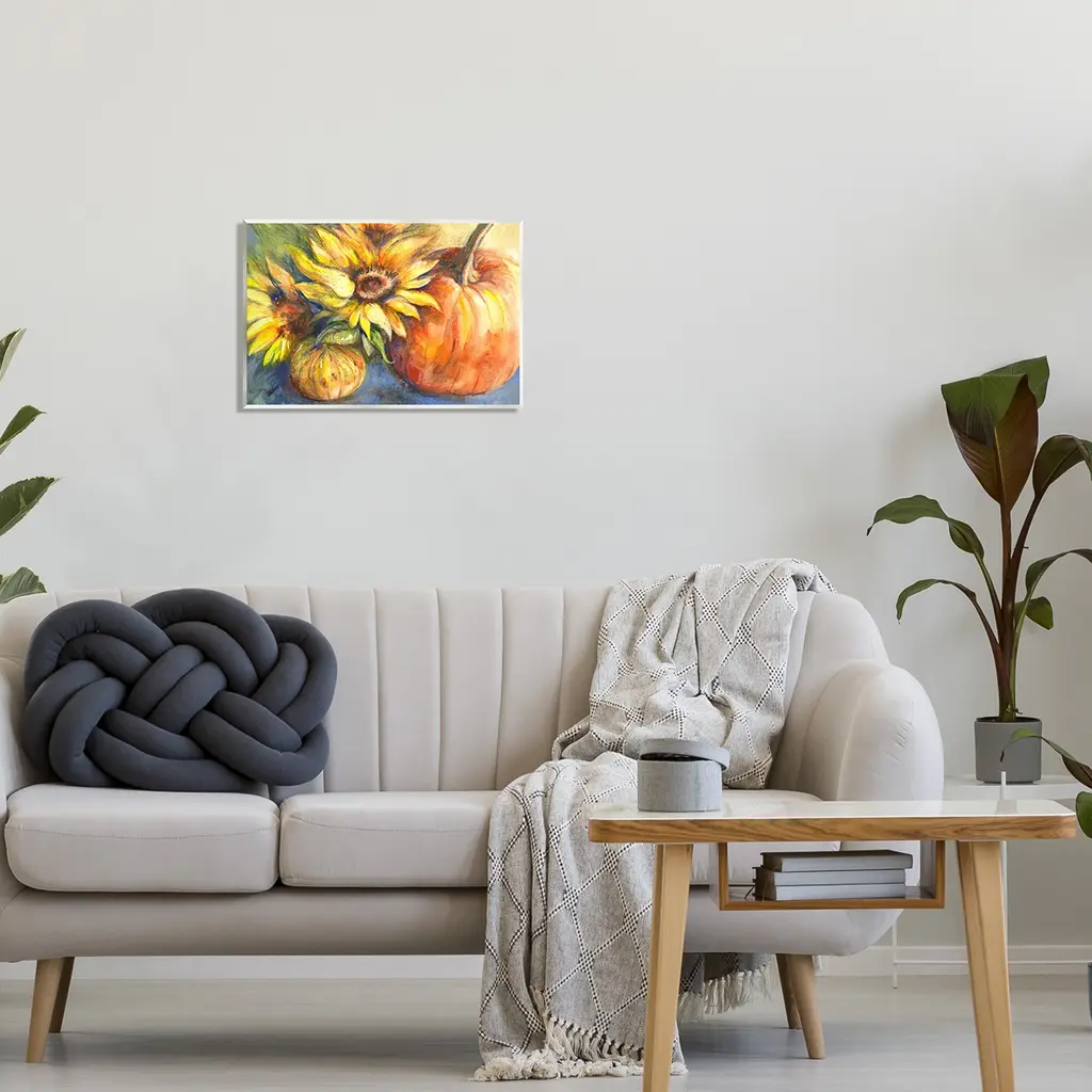 Our wall plaques start as high-quality lithograph prints mounted on durable 0.5-inch thick MDF wood. Each piece is hand finished and comes with a fresh layer of white foil on the sides to give it a crisp, clean look. Plaques arrive ready to hang without installation and come with removable plastic corners to keep them from damage in transit. Wall Art is made in the USA.Features: Dimensions: 15 x 0.5 x 10 InchesWall Plaque Sizes Include Standard: 15 x 0.5 x 10 Oversized: 19 x 0.5 x 13Wall Art is Ready to Hang with Hardware Free Hanging. No installation required. For Easy Set Up Lean or Layer Artwork on Shelf or Against Wall.All of our wall plaques start off as high quality lithograph prints that are then mounted on durable 0.5 inch thick MDF wood. Each piece is hand finished and comes with a fresh layer of foil on the sides to give it a crisp clean look. Made In USA.Artwork Relates To: Painting, Flower, Plant, Sunflower, Gourd, Vegetable, Pumpkin, Floral, Autumn, SeasonalDesign by Joy Allen