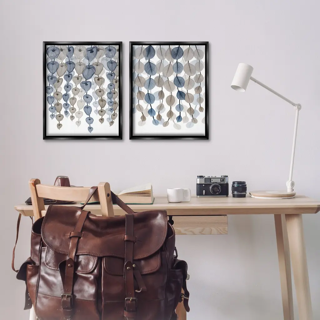 Stupell Falling Vines Neutral Leaves Framed Floater Canvas Wall Art Design By Albert Koetsier (Set Of 2) - 17 X 21 - Black