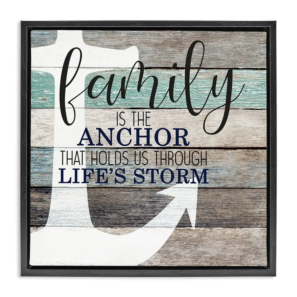 Elevate your home or office to the next level with Stupell Framed Floating Canvas Wall Art. Our premium hand-stretched canvas is mounted securely into a sturdy lightweight frame. The museum-style gap between the wrapped canvas and the box frame gives the illusion of floating artwork. Stupell Wall Art is made in the USA.Features: Dimensions: 18 x 1.7 x 18 Frame, 17 x 1.5 x 17 Canvas ArtFloating Frame Canvas Products are available in sizes 18"x18" and 25"x25". All Floating Frame Canvas Products have a 1.7" Depth.Wall Art is Ready to Hang with Hardware Free Hanging. No Installation required. For Easy Set Up Lean or Layer Artwork on Shelf or Against Wall. Artwork is Permently Fixed into the Frame.Our elevated 1.7" Thick Floating Frame is the perfect complement to our canvas style Wall Art. We use only the highest quality inks in house with industry leading printing solutions. Canvas is hand stretched over a durable wood foundation and then mounted securly into a Modern Box Frame. Made in the USA.Artwork Relates To: Rustic, Phrase, Family, Stripes, Pattern, Nautical, AnchorDesign by Kim Allen