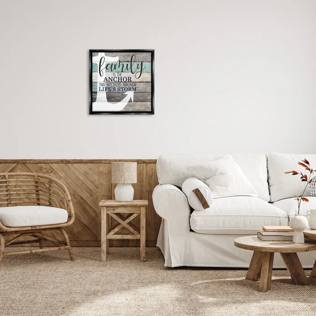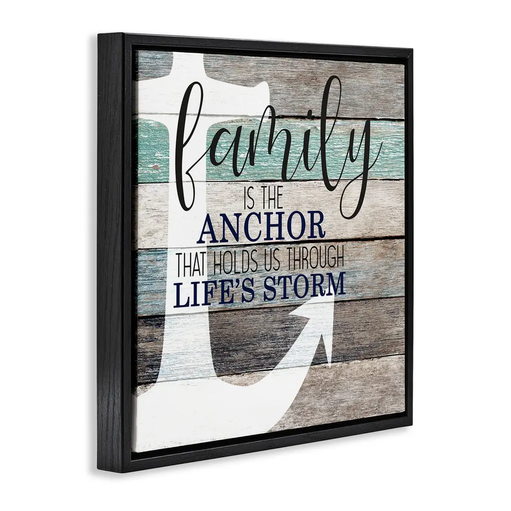 Stupell Family Anchor Through Storm Motivational Framed Floater Canvas Wall Art Design By Kim Allen - 25 X 25 - Black