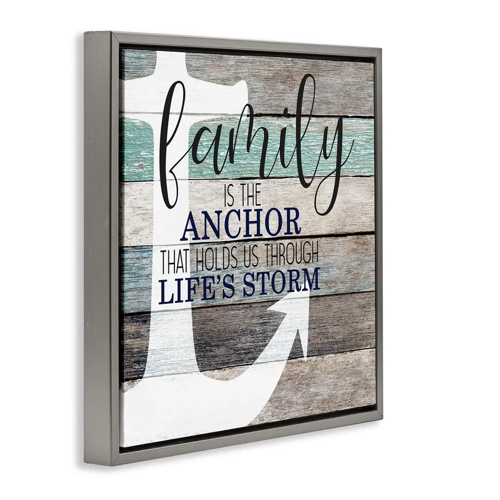 Elevate your home or office to the next level with Stupell Framed Floating Canvas Wall Art. Our premium hand-stretched canvas is mounted securely into a sturdy lightweight frame. The museum-style gap between the wrapped canvas and the box frame gives the illusion of floating artwork. Stupell Wall Art is made in the USA.Features: Dimensions: 18 x 1.7 x 18 Frame, 17 x 1.5 x 17 Canvas ArtFloating Frame Canvas Products are available in sizes 18"x18" and 25"x25". All Floating Frame Canvas Products have a 1.7" Depth.Wall Art is Ready to Hang with Hardware Free Hanging. No Installation required. For Easy Set Up Lean or Layer Artwork on Shelf or Against Wall. Artwork is Permently Fixed into the Frame.Our elevated 1.7" Thick Floating Frame is the perfect complement to our canvas style Wall Art. We use only the highest quality inks in house with industry leading printing solutions. Canvas is hand stretched over a durable wood foundation and then mounted securly into a Modern Box Frame. Made in the USA.Artwork Relates To: Rustic, Phrase, Family, Stripes, Pattern, Nautical, AnchorDesign by Kim Allen