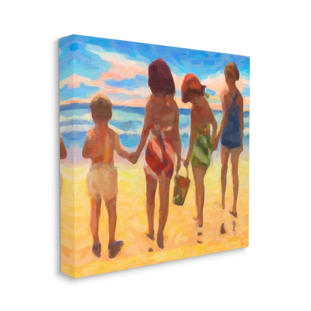 We create our stretched canvas to the highest standards. Using only the highest quality inks and canvas on Mimaki printers, we hand-cut and stretch each piece over a 1.5-inch thick wooden frame for hanging. As a result, the art comes ready to hang on the sturdy ledge with no installation required. Stupell Wall Art is made in the USA.Features: Dimensions: 17 x 1.5 x 17 InchesStretched Canvas Sizes Include Standard: 17 x 1.5 x 17 Large: 24 x 1.5 x 24 X-Large: 30 x 1.5 x 30 Oversized: 36 x 1.5 x 36Wall Art is Ready to Hang with Hardware Free Hanging. No installation required. For Easy Set Up Lean or Layer Artwork on Shelf or Against Wall.Our stretched canvas is created with the highest standards. We use only the highest quality inks and canvas on our in house Mimaki printers, and then hand cut and stretch each piece over a 1.5 inch thick wooden frame for hanging. Made In USA.Artwork Relates To: Swimwear, Summer, Beach, Coast, Nature, Outdoors, Sea, Shoreline, Water, Painting, People, FamilyDesign by Graffi*Tee Studios