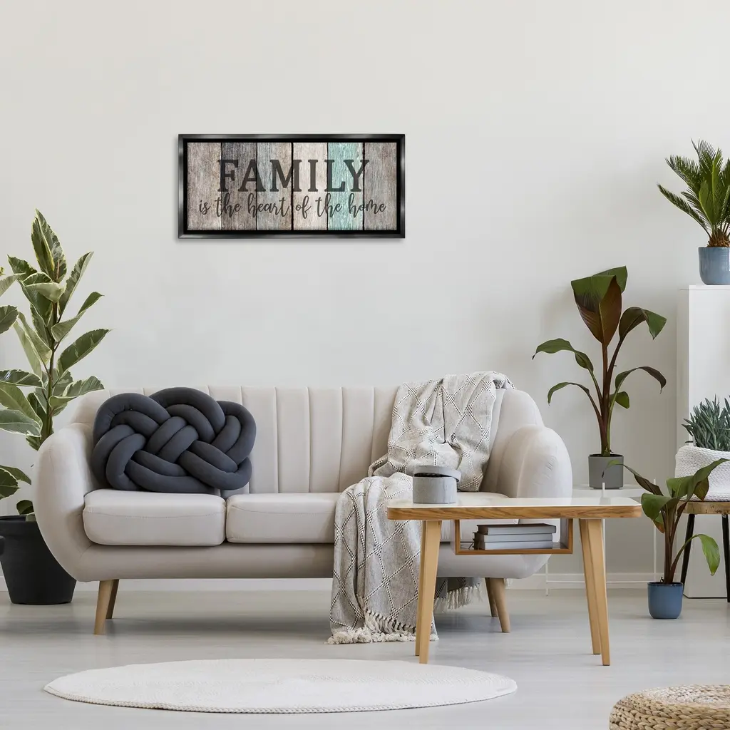 Stupell Family Is Heart Of Home Quote Framed Floater Canvas Wall Art Design By Kim Allen - 31 X 14 - Black