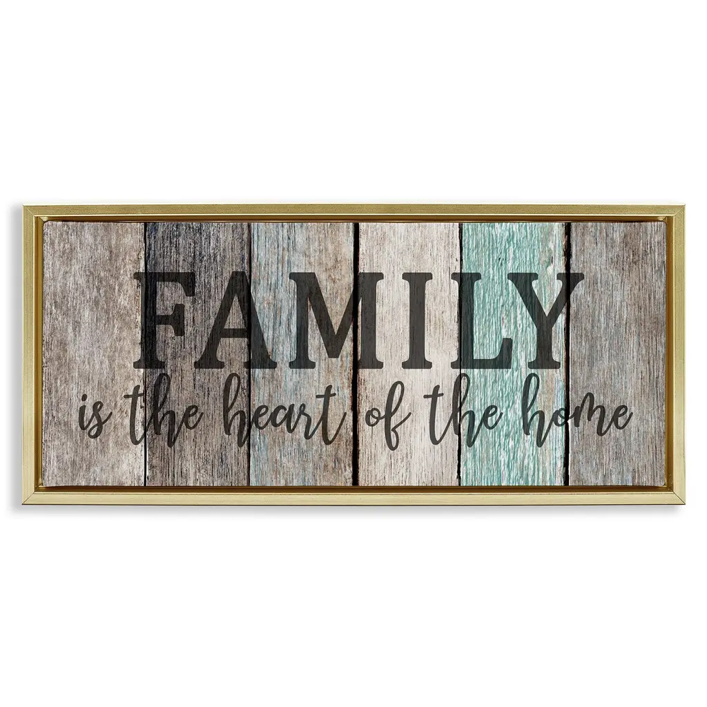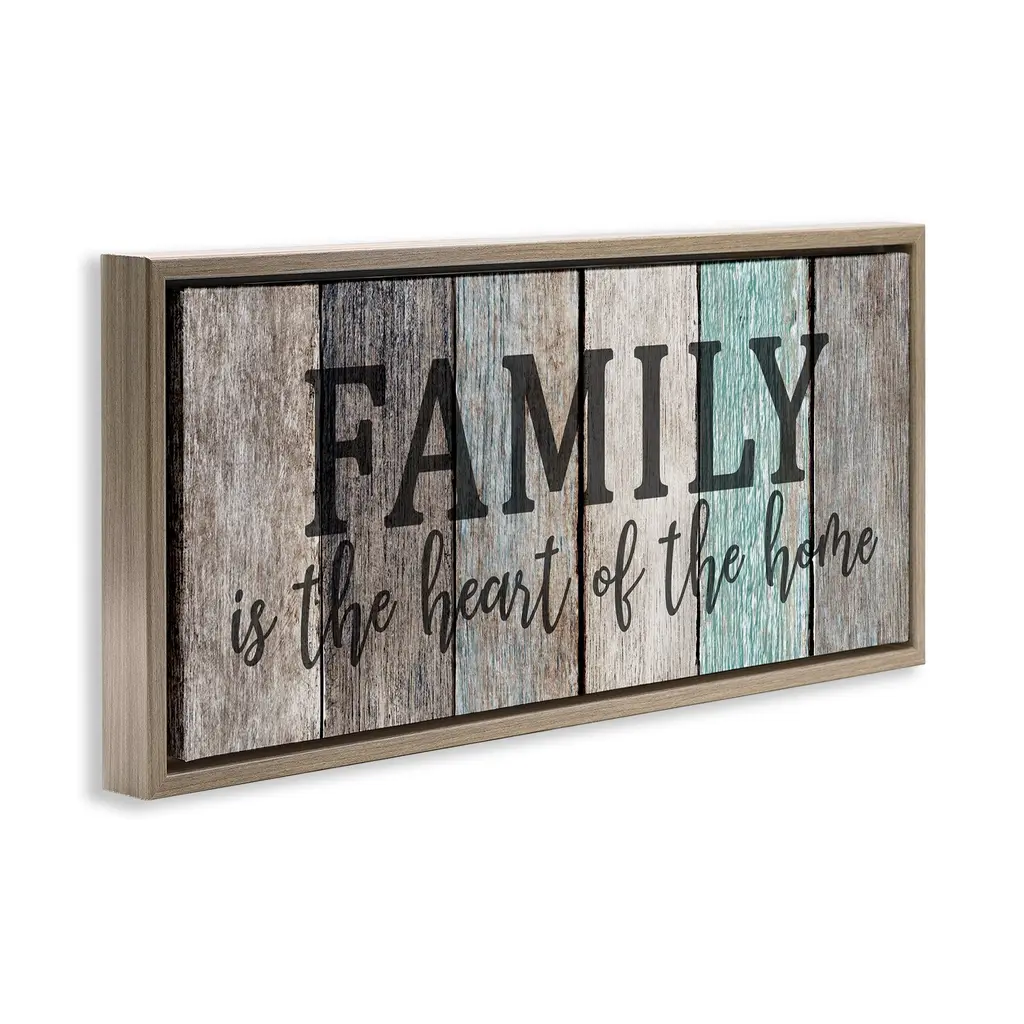 Stupell Family Is Heart Of Home Quote Framed Floater Canvas Wall Art Design By Kim Allen - 31 X 14 - Brown