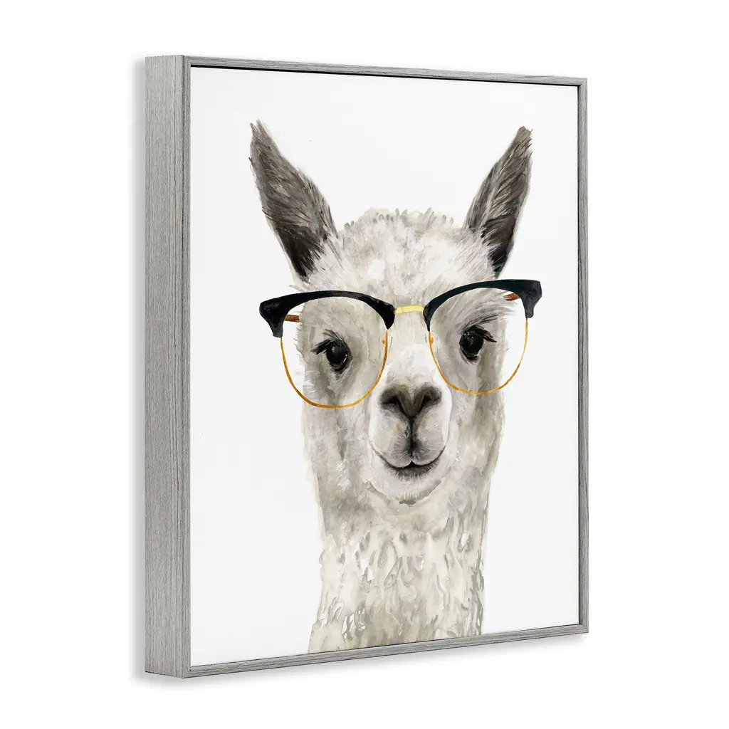 Add dimension to any room with our textured Framed Giclee Artwork. Our framed artwork is securely mounted into a 1.5-inch thick wood grain frame and ready to hang. Frames are available in three alluring styles: black, gray farmhouse and white. In addition, you should check out our oversized options if you want a statement piece. Stupell Wall Art is made in the USA.Features: Dimensions: 11 x 1.5 x 14 FramedFramed Giclee Sizes Include Standard: 11 x 1.5 x 14 Large: 16 x 1.5 x 20 Oversized: 24 x 1.5 x 30Wall Art is Ready to Hang - No Installation or Hardware Needed. For Easy Set Up Lean or Layer Artwork on Shelf or Against Wall.Our giclée prints are carefully mounted on a durable MDF backing, and then perfectly finished in a 1.5 inch thick woodgrain frame. Mounted frame colors include black, gray farmhouse and white. Made In USA.Artwork Relates To: Glasses, Animal, Mammal, LlamaDesign by Victoria Borges