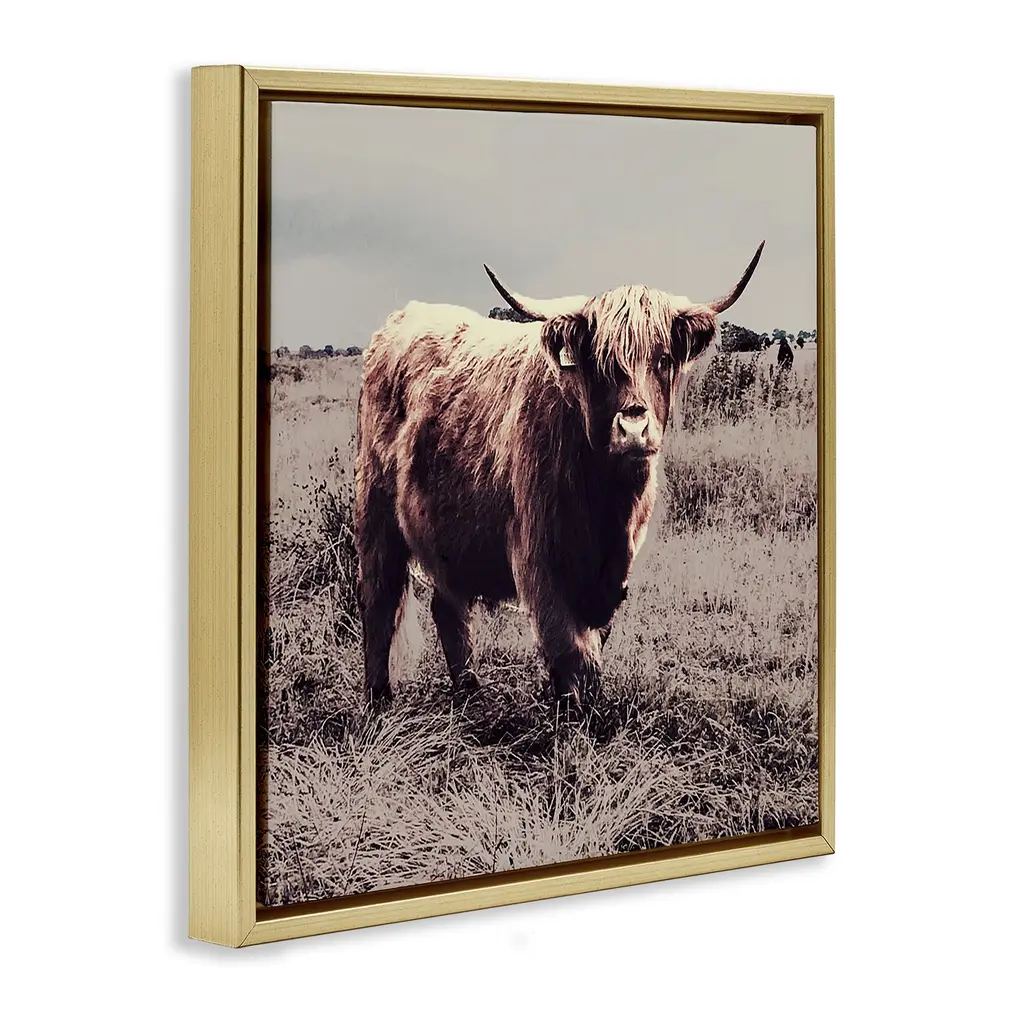 Elevate your home or office to the next level with Stupell Framed Floating Canvas Wall Art. Our premium hand-stretched canvas is mounted securely into a sturdy lightweight frame. The museum-style gap between the wrapped canvas and the box frame gives the illusion of floating artwork. Stupell Wall Art is made in the USA.Features: Dimensions: 18 x 1.7 x 18 Frame, 17 x 1.5 x 17 Canvas ArtFloating Frame Canvas Products are available in sizes 18"x18" and 25"x25". All Floating Frame Canvas Products have a 1.7" Depth.Wall Art is Ready to Hang with Hardware Free Hanging. No Installation required. For Easy Set Up Lean or Layer Artwork on Shelf or Against Wall. Artwork is Permently Fixed into the Frame.Our elevated 1.7" Thick Floating Frame is the perfect complement to our canvas style Wall Art. We use only the highest quality inks in house with industry leading printing solutions. Canvas is hand stretched over a durable wood foundation and then mounted securly into a Modern Box Frame. Made in the USA.Artwork Relates To: Animal, Country, Farmhouse, Rodeo, Cattle, Cow, SouthwesternDesign by SD Graphics Studio
