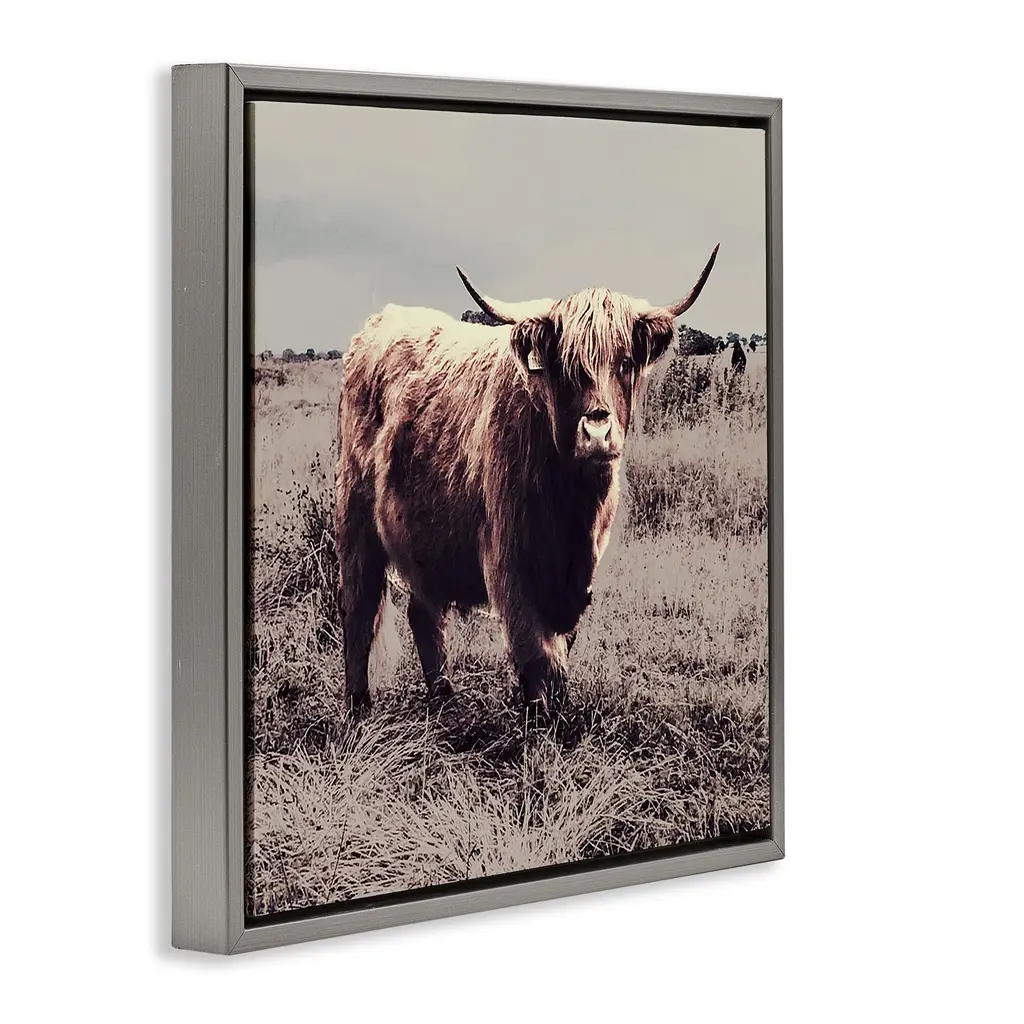 Elevate your home or office to the next level with Stupell Framed Floating Canvas Wall Art. Our premium hand-stretched canvas is mounted securely into a sturdy lightweight frame. The museum-style gap between the wrapped canvas and the box frame gives the illusion of floating artwork. Stupell Wall Art is made in the USA.Features: Dimensions: 18 x 1.7 x 18 Frame, 17 x 1.5 x 17 Canvas ArtFloating Frame Canvas Products are available in sizes 18"x18" and 25"x25". All Floating Frame Canvas Products have a 1.7" Depth.Wall Art is Ready to Hang with Hardware Free Hanging. No Installation required. For Easy Set Up Lean or Layer Artwork on Shelf or Against Wall. Artwork is Permently Fixed into the Frame.Our elevated 1.7" Thick Floating Frame is the perfect complement to our canvas style Wall Art. We use only the highest quality inks in house with industry leading printing solutions. Canvas is hand stretched over a durable wood foundation and then mounted securly into a Modern Box Frame. Made in the USA.Artwork Relates To: Animal, Country, Farmhouse, Rodeo, Cattle, Cow, SouthwesternDesign by SD Graphics Studio