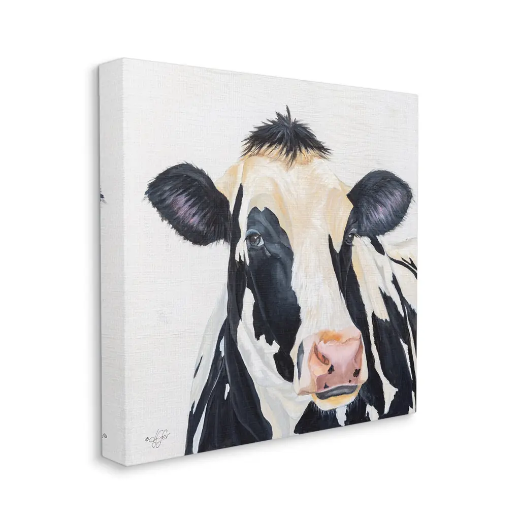Proudly made in the USA, Our stretched canvas is created with the highest standards. We use only the highest quality inks and canvas on our in house Mimaki printers, and then hand cut and stretch each piece over a 1.5 inch thick wooden frame for hanging. The art comes ready to hang with no installation required.Features: Wall Art is Ready to Hang - No Installation or Hardware Needed. For Easy Set Up Lean or Layer Artwork on Shelf or Against Wall.Our stretched canvas is created with the highest standards. We use only the highest quality inks and canvas on our in house Mimaki printers, and then hand cut and stretch each piece over a 1.5 inch thick wooden frame for hanging. Made In USA.Artwork Relates To: Cow; Cattle; Mammal; Animal; Dairy CowDesign by Diane Fifer