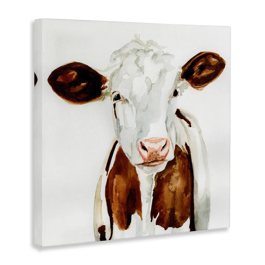 Stupell Farm Cow Portrait Neutral Watercolor Brown Tan Canvas Wall Art - 24 X 24