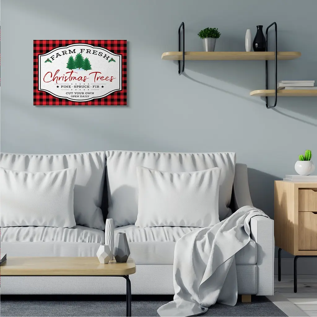 Stupell Farm Fresh Christmas Tree Sign Red Buffalo Plaid Canvas Wall Art - 24 X 30
