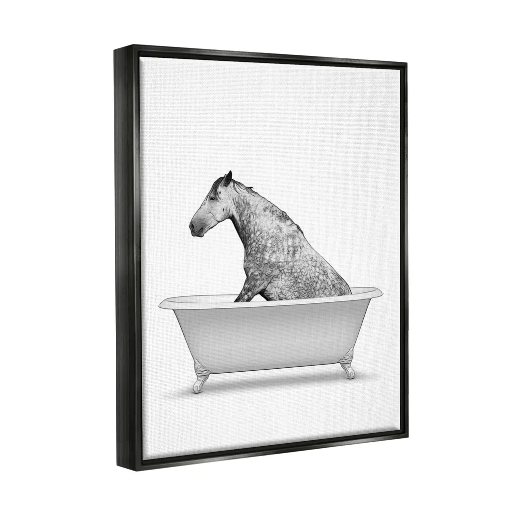 Stupell Farm Horse Bathtub Animal Framed Floater Canvas Wall Art By Annalisa Latella - 16 X 20 - Black