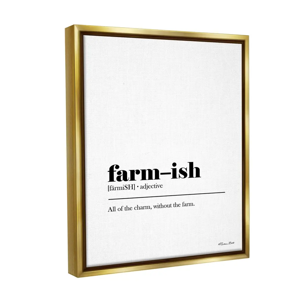 Stupell Farm-Ish Funny Definition Framed Floater Canvas Wall Art Design By Susan Ball - 25 X 31 - Gold