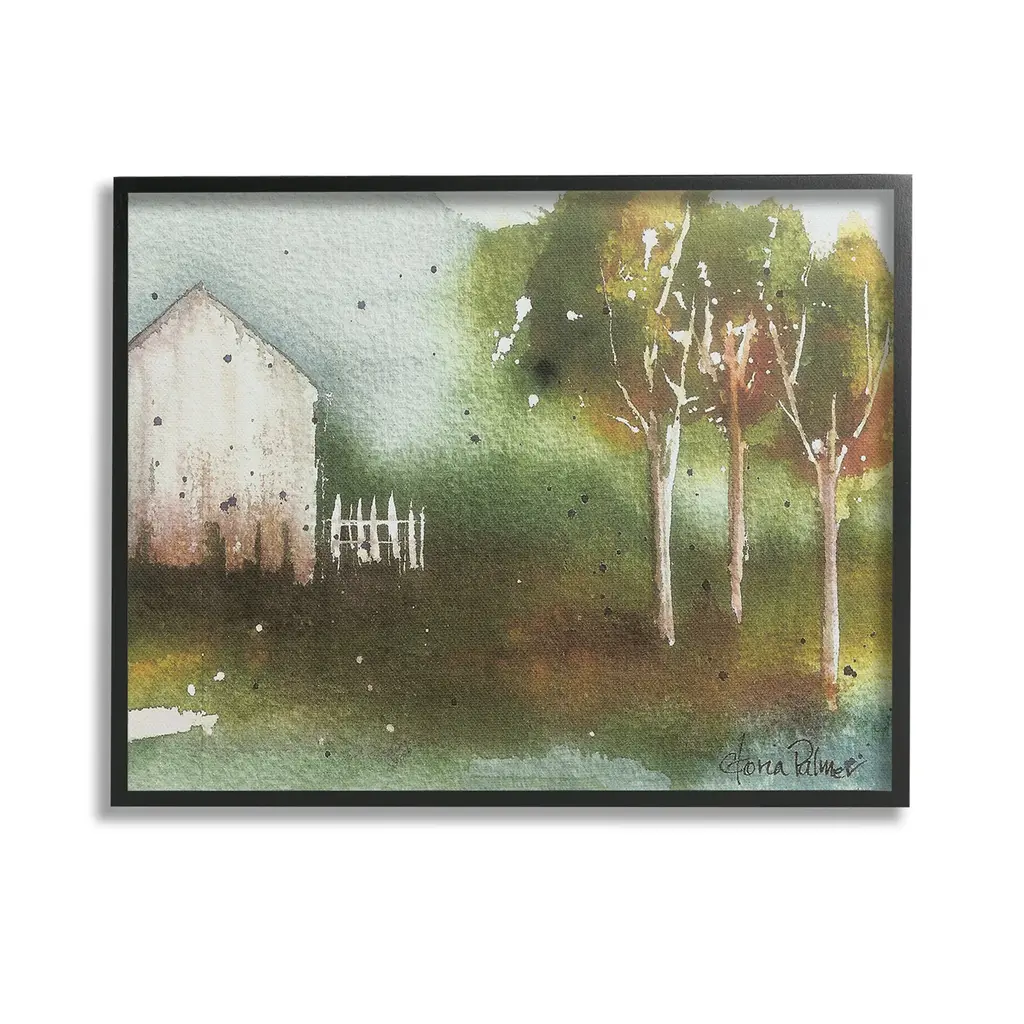 Stupell Farm Nature Watercolor Framed Giclee Art Design By Gloria Palmer - 14 X 11 - White