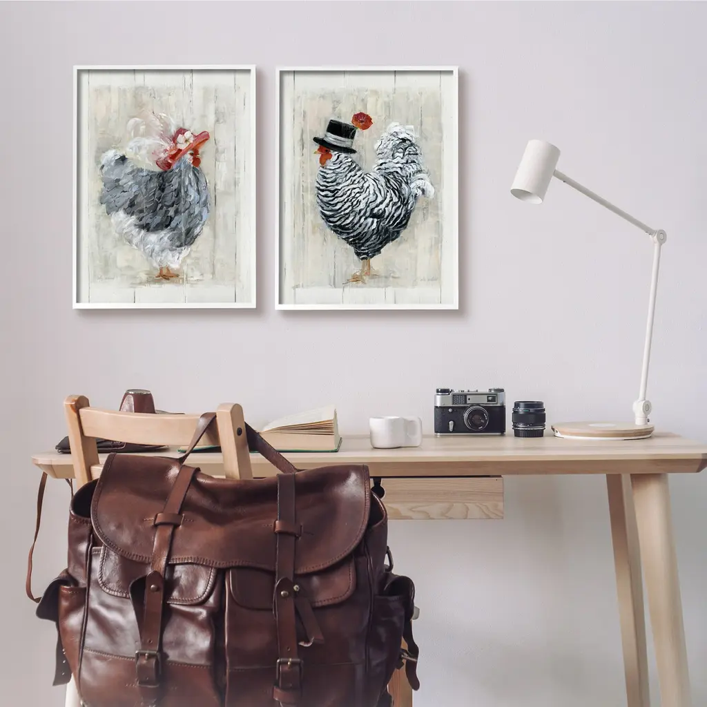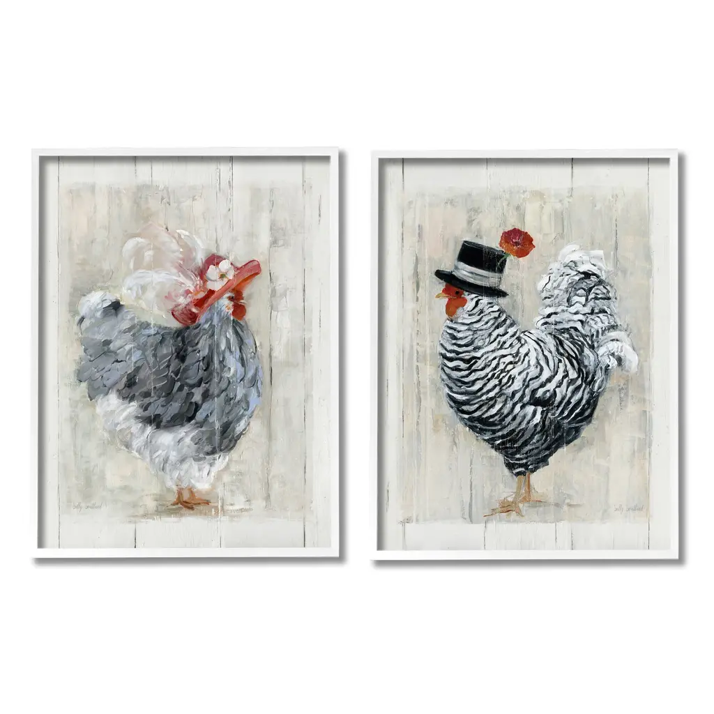 Stupell Farm Rooster And Hen Vintage Birds Brim Hats 2Pc Multi Piece Framed Wall Art Set - 11 X 14 - Black