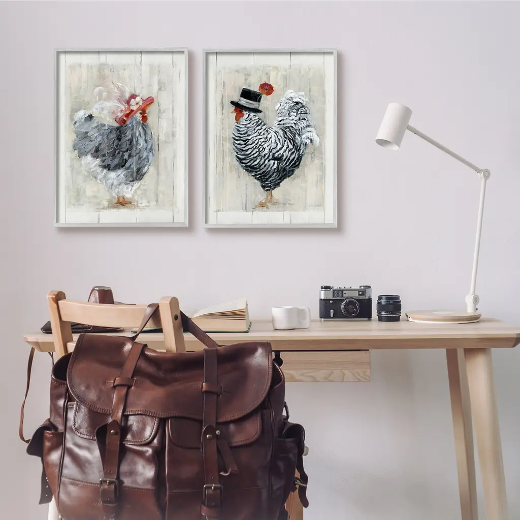 Stupell Farm Rooster And Hen Vintage Birds Brim Hats 2Pc Multi Piece Framed Wall Art Set - 16 X 20 - Grey