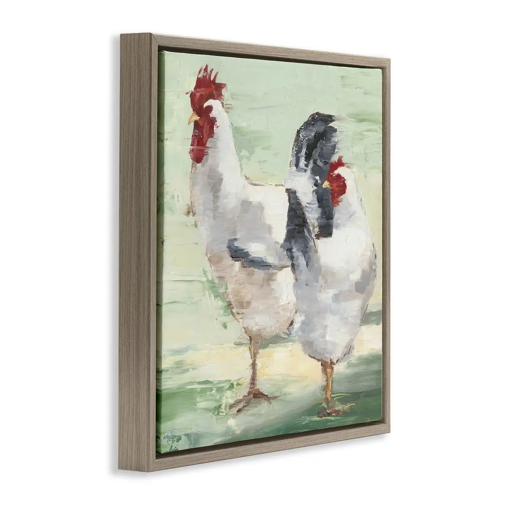 Elevate your home or office to the next level with Stupell Framed Floating Canvas Wall Art. Our premium hand-stretched canvas is mounted securely into a sturdy lightweight frame. The museum-style gap between the wrapped canvas and the box frame gives the illusion of floating artwork. Stupell Wall Art is made in the USA.Features: Dimensions: 18 x 1.7 x 18 Frame, 17 x 1.5 x 17 Canvas ArtFloating Frame Canvas Products are available in sizes 18"x18" and 25"x25". All Floating Frame Canvas Products have a 1.7" Depth.Wall Art is Ready to Hang with Hardware Free Hanging. No Installation required. For Easy Set Up Lean or Layer Artwork on Shelf or Against Wall. Artwork is Permently Fixed into the Frame.Our elevated 1.7" Thick Floating Frame is the perfect complement to our canvas style Wall Art. We use only the highest quality inks in house with industry leading printing solutions. Canvas is hand stretched over a durable wood foundation and then mounted securly into a Modern Box Frame. Made in the USA.Artwork Relates To: Animal, Bird, Chicken, Rooster, Farm, Country, TraditionalDesign by Ethan Harper