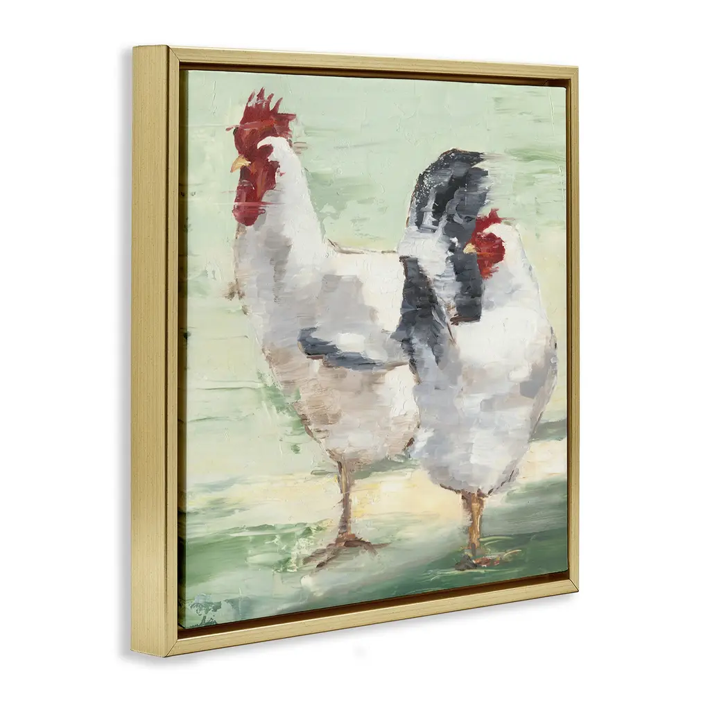 Elevate your home or office to the next level with Stupell Framed Floating Canvas Wall Art. Our premium hand-stretched canvas is mounted securely into a sturdy lightweight frame. The museum-style gap between the wrapped canvas and the box frame gives the illusion of floating artwork. Stupell Wall Art is made in the USA.Features: Dimensions: 18 x 1.7 x 18 Frame, 17 x 1.5 x 17 Canvas ArtFloating Frame Canvas Products are available in sizes 18"x18" and 25"x25". All Floating Frame Canvas Products have a 1.7" Depth.Wall Art is Ready to Hang with Hardware Free Hanging. No Installation required. For Easy Set Up Lean or Layer Artwork on Shelf or Against Wall. Artwork is Permently Fixed into the Frame.Our elevated 1.7" Thick Floating Frame is the perfect complement to our canvas style Wall Art. We use only the highest quality inks in house with industry leading printing solutions. Canvas is hand stretched over a durable wood foundation and then mounted securly into a Modern Box Frame. Made in the USA.Artwork Relates To: Animal, Bird, Chicken, Rooster, Farm, Country, TraditionalDesign by Ethan Harper