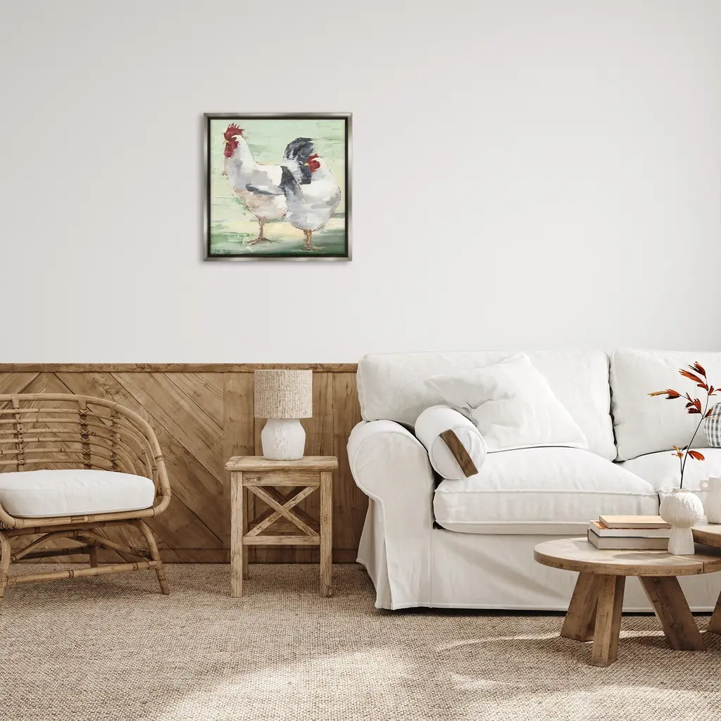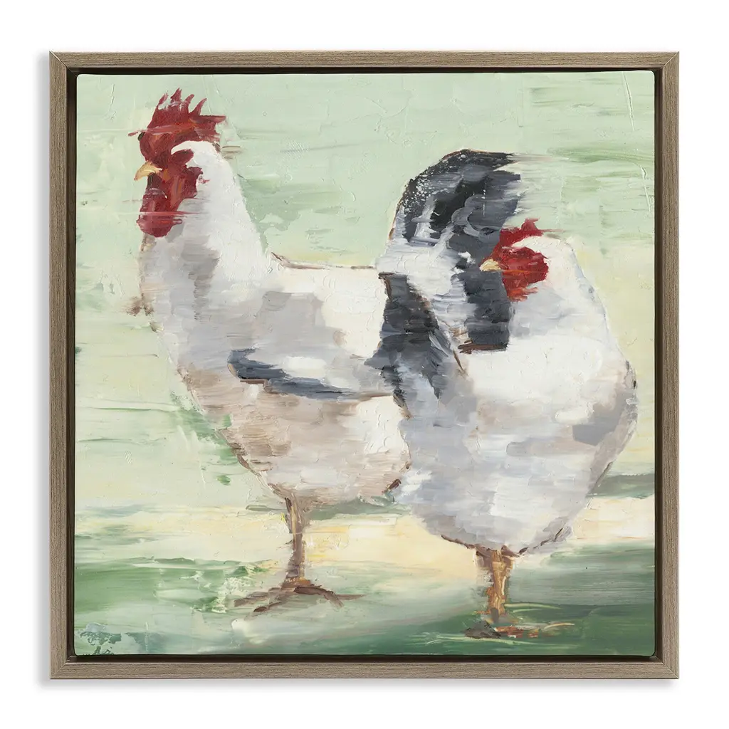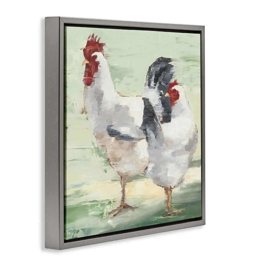 Elevate your home or office to the next level with Stupell Framed Floating Canvas Wall Art. Our premium hand-stretched canvas is mounted securely into a sturdy lightweight frame. The museum-style gap between the wrapped canvas and the box frame gives the illusion of floating artwork. Stupell Wall Art is made in the USA.Features: Dimensions: 18 x 1.7 x 18 Frame, 17 x 1.5 x 17 Canvas ArtFloating Frame Canvas Products are available in sizes 18"x18" and 25"x25". All Floating Frame Canvas Products have a 1.7" Depth.Wall Art is Ready to Hang with Hardware Free Hanging. No Installation required. For Easy Set Up Lean or Layer Artwork on Shelf or Against Wall. Artwork is Permently Fixed into the Frame.Our elevated 1.7" Thick Floating Frame is the perfect complement to our canvas style Wall Art. We use only the highest quality inks in house with industry leading printing solutions. Canvas is hand stretched over a durable wood foundation and then mounted securly into a Modern Box Frame. Made in the USA.Artwork Relates To: Animal, Bird, Chicken, Rooster, Farm, Country, TraditionalDesign by Ethan Harper