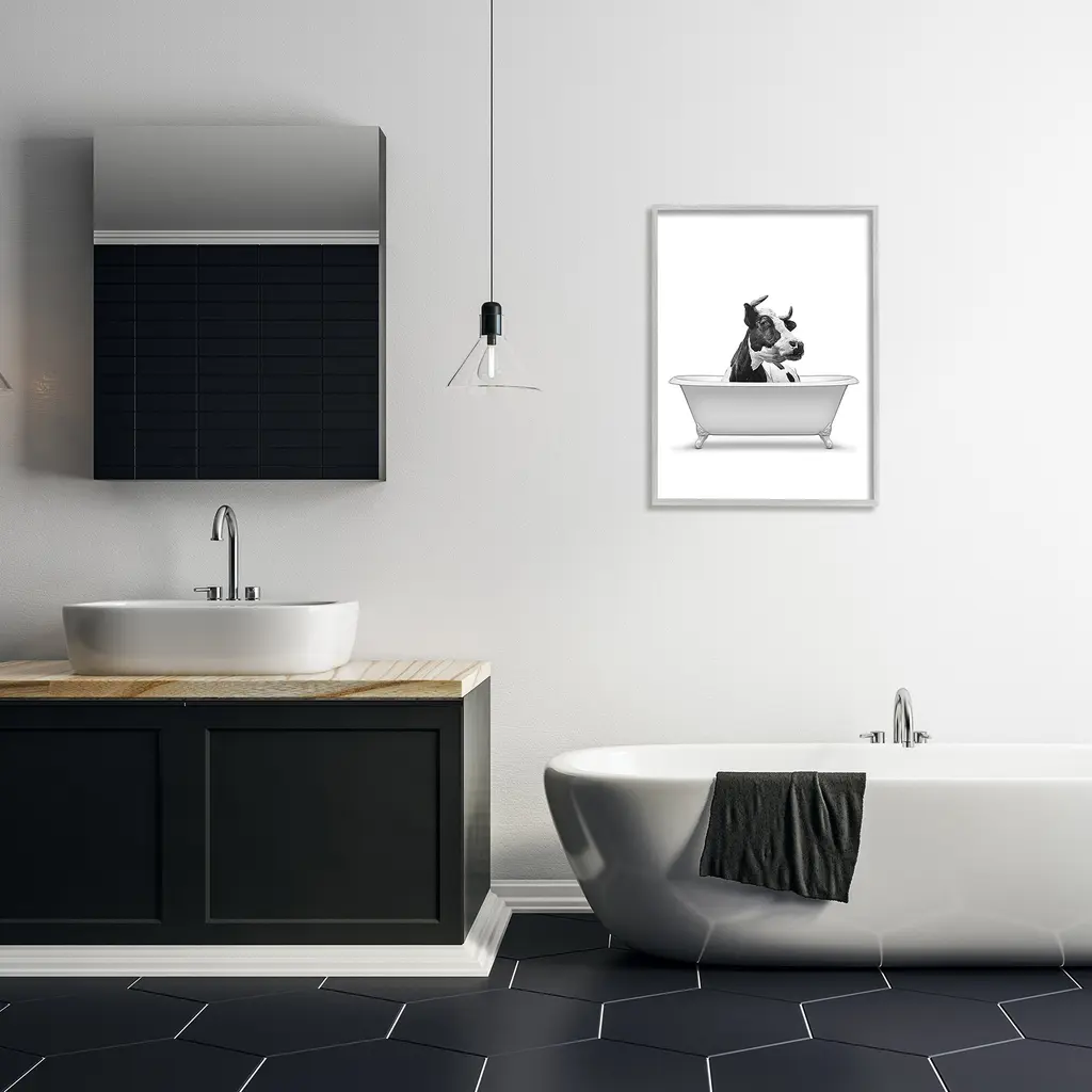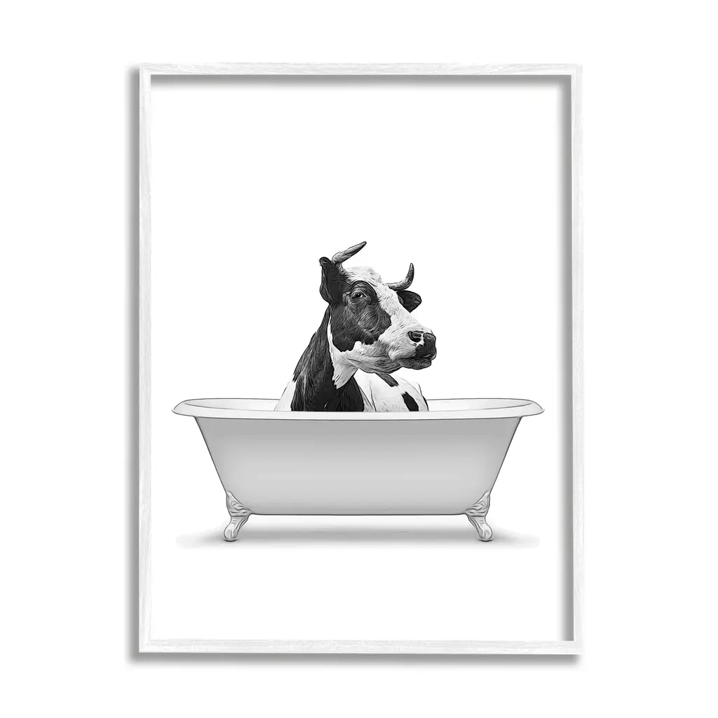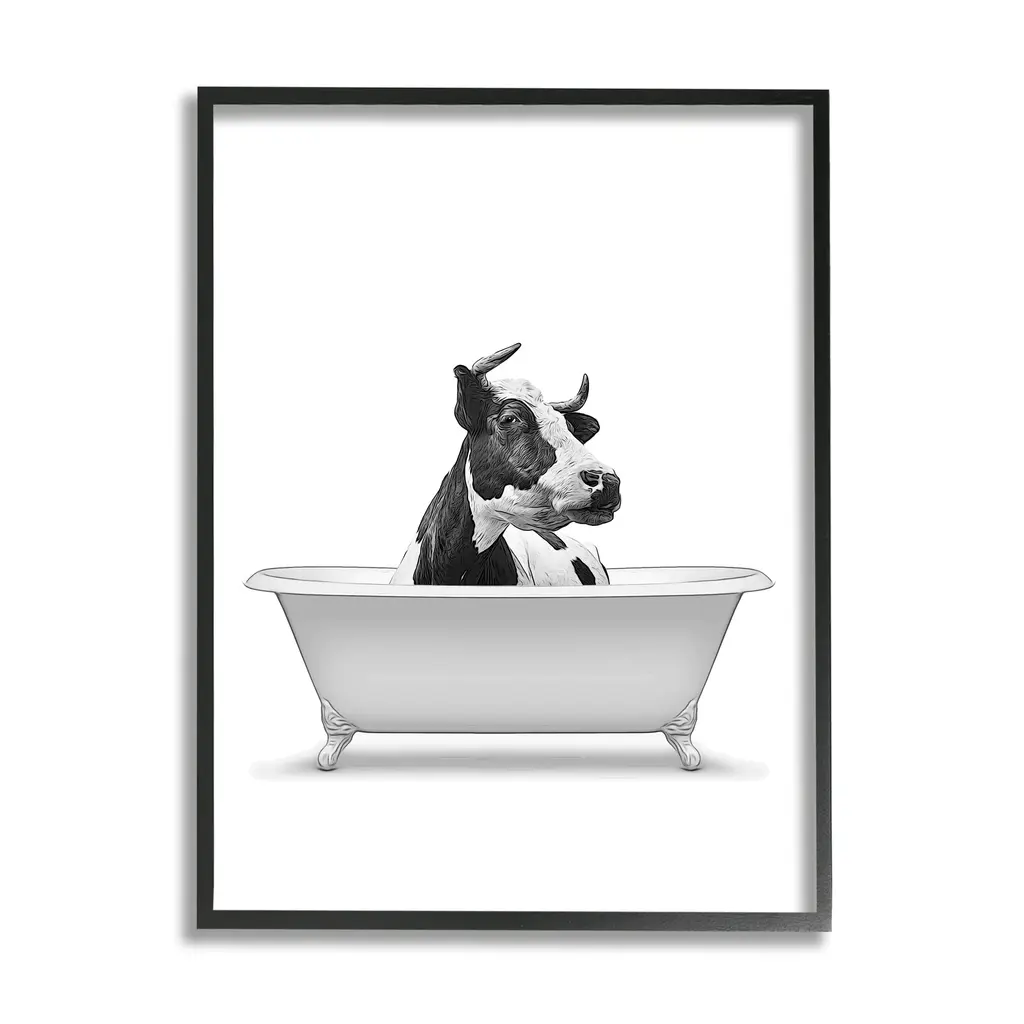 Add dimension to any room with our textured Framed Giclee Artwork. Our framed artwork is securely mounted into a 1.5-inch thick wood grain frame and ready to hang. Frames are available in three alluring styles: black, gray farmhouse and white. In addition, you should check out our oversized options if you want a statement piece. Stupell Wall Art is made in the USA.Features: Dimensions: 11 x 1.5 x 14 FramedFramed Giclee Sizes Include Standard: 11 x 1.5 x 14 Large: 16 x 1.5 x 20 Oversized: 24 x 1.5 x 30Wall Art is Ready to Hang - No Installation or Hardware Needed. For Easy Set Up Lean or Layer Artwork on Shelf or Against Wall.Our giclée prints are carefully mounted on a durable MDF backing, and then perfectly finished in a 1.5 inch thick woodgrain frame. Mounted frame colors include black, gray farmhouse and white. Made In USA.Artwork Relates To: Animal, Mammal, Wildlife, Bathroom, Cow, CattleDesign by Annalisa Latella