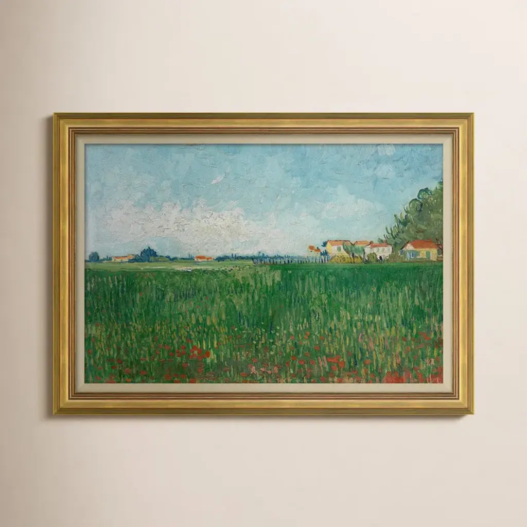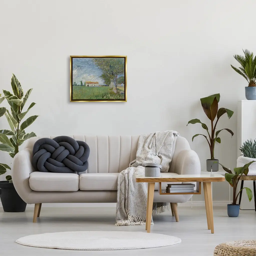 Stupell Farmhouse In The Corn Van Gogh Landscape Floater Canvas Wall Art By One1000paintings - 21 X 17 - Gold