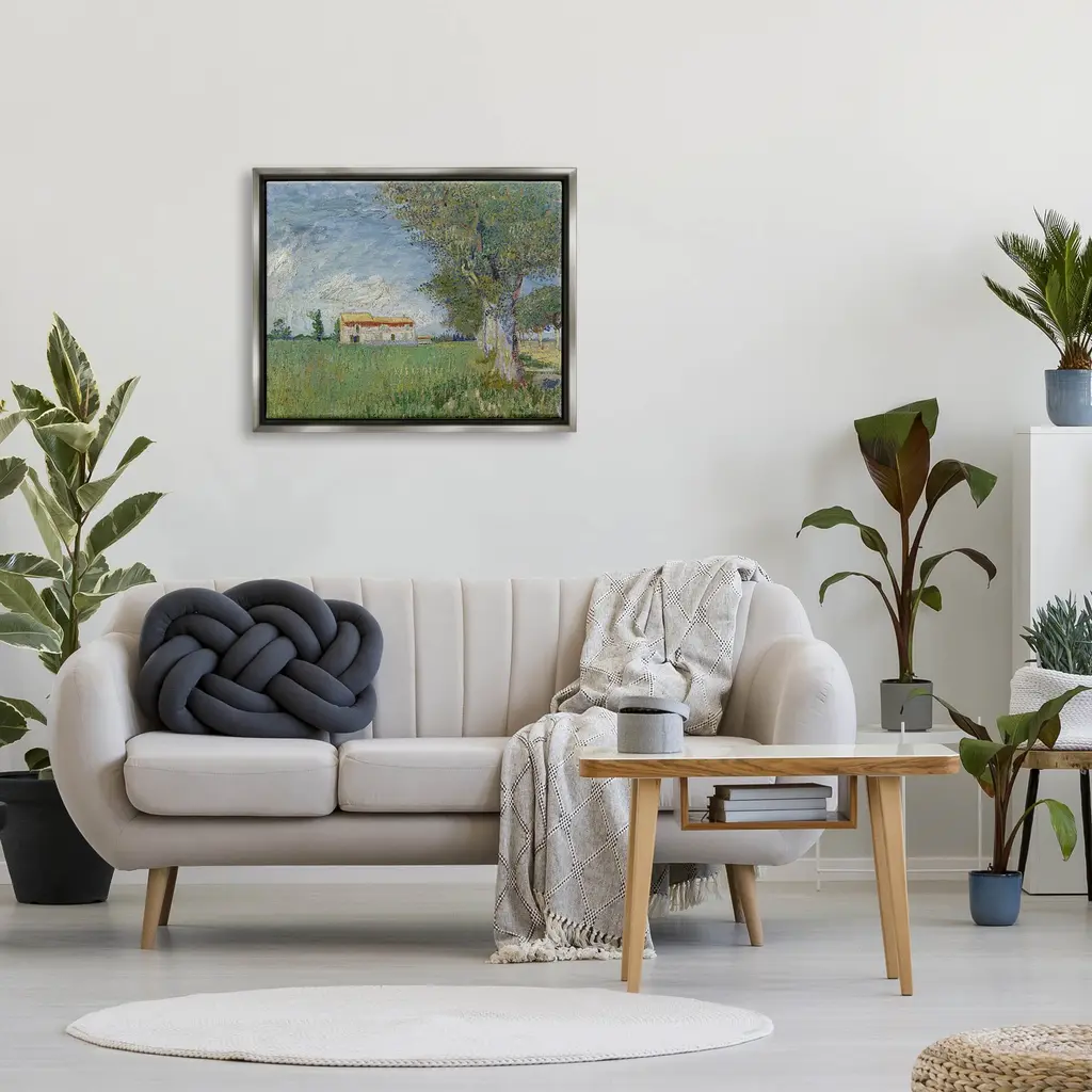 Stupell Farmhouse In The Corn Van Gogh Landscape Floater Canvas Wall Art By One1000paintings - 31 X 25 - Grey