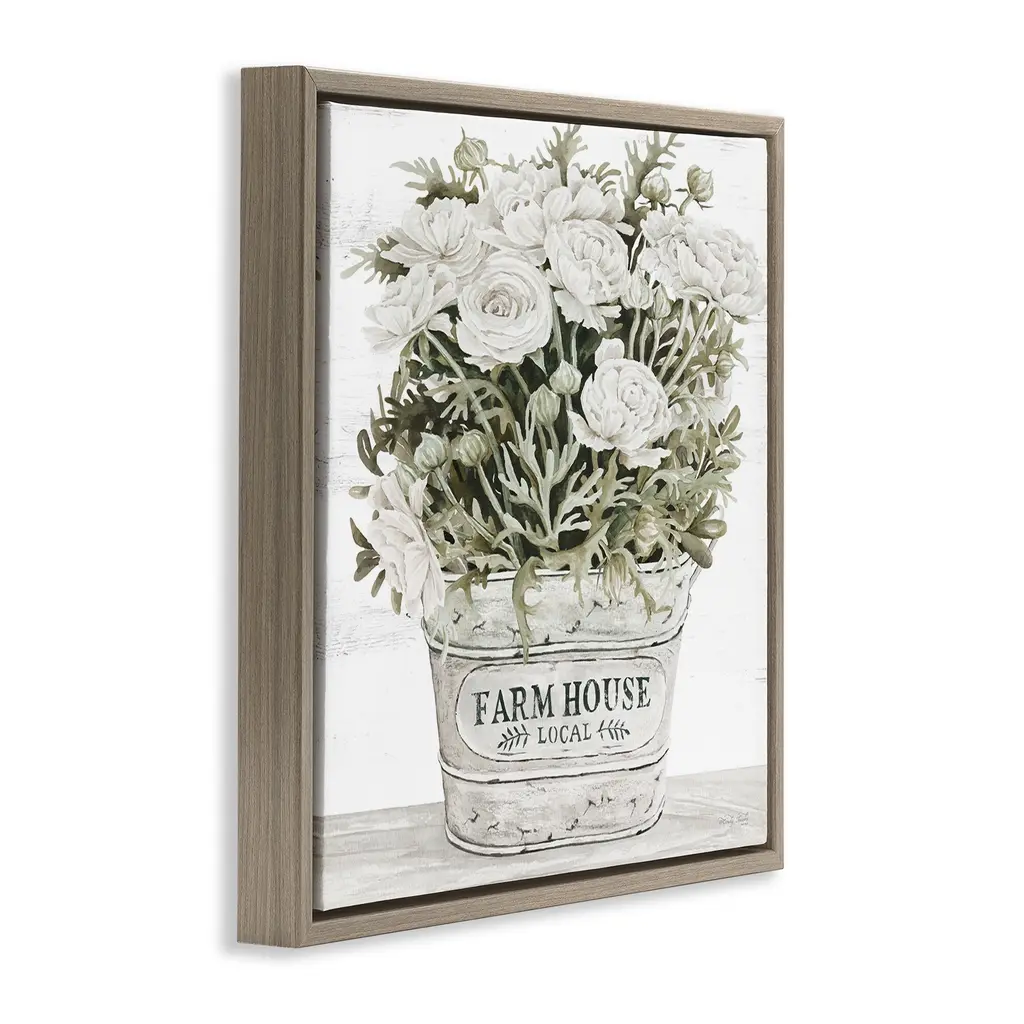Stupell Farmhouse Planter White Rose Blossoms Framed Floater Canvas Wall Art Design By Cindy Jacobs - 18 X 18 - Brown