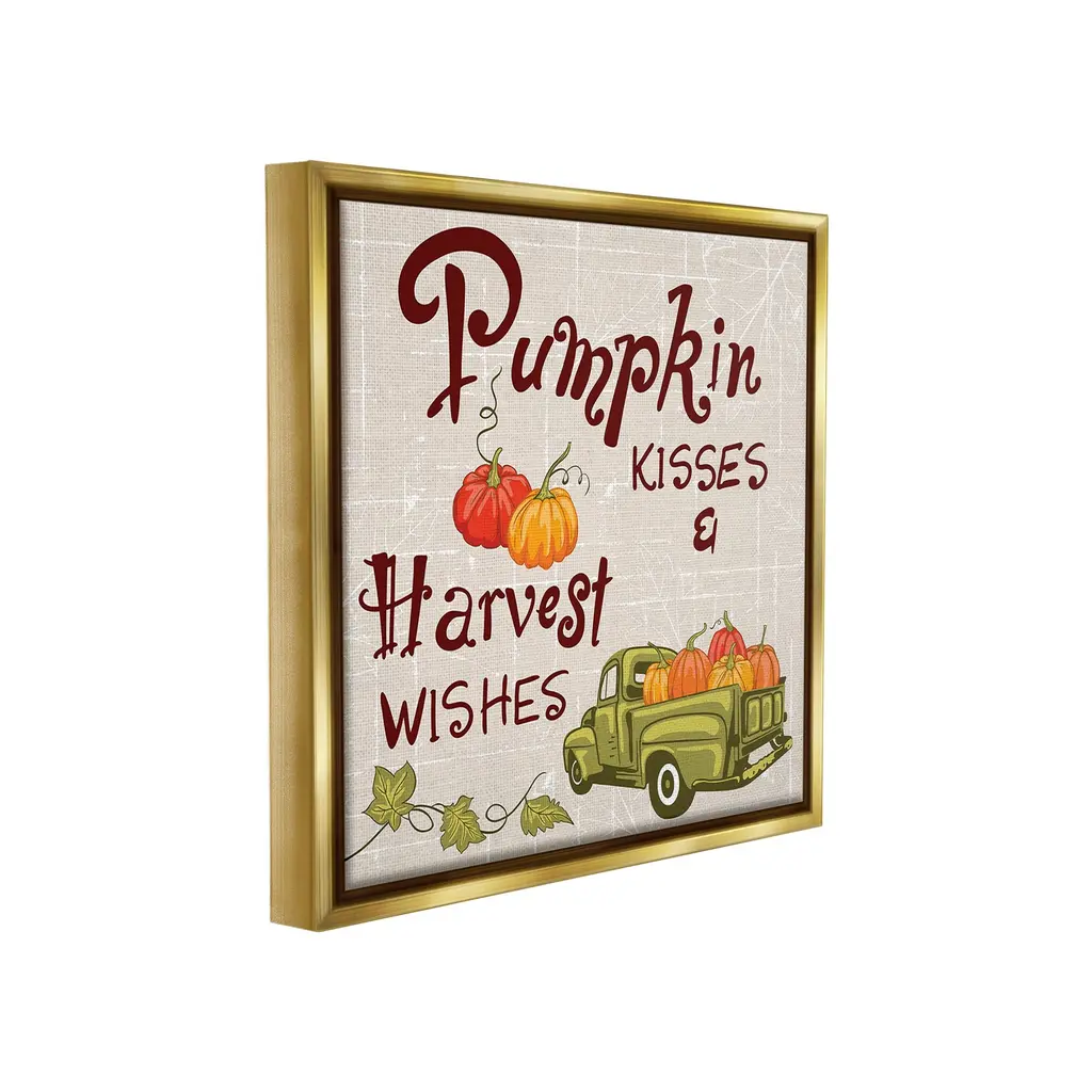 Elevate your home or office to the next level with Stupell Framed Floating Canvas Wall Art. Our premium hand-stretched canvas is mounted securely into a sturdy lightweight frame. The museum-style gap between the wrapped canvas and the box frame gives the illusion of floating artwork. Stupell Wall Art is made in the USA.Features: Dimensions: 18 x 1.7 x 18 Frame, 17 x 1.5 x 17 Canvas ArtFloating Frame Canvas Products are available in sizes 18"x18" and 25"x25". All Floating Frame Canvas Products have a 1.7" Depth.Wall Art is Ready to Hang with Hardware Free Hanging. No Installation required. For Easy Set Up Lean or Layer Artwork on Shelf or Against Wall. Artwork is Permently Fixed into the Frame.Our elevated 1.7" Thick Floating Frame is the perfect complement to our canvas style Wall Art. We use only the highest quality inks in house with industry leading printing solutions. Canvas is hand stretched over a durable wood foundation and then mounted securly into a Modern Box Frame. Made in the USA.Artwork Relates To: Nature, Country, Harvest, Plant, Fall, Autumn, Pumpkin, Phrase, Pattern, Farmhouse, Truck, Pumpkin Kisses & Harvest WishesDesign by Diane Labombarbe