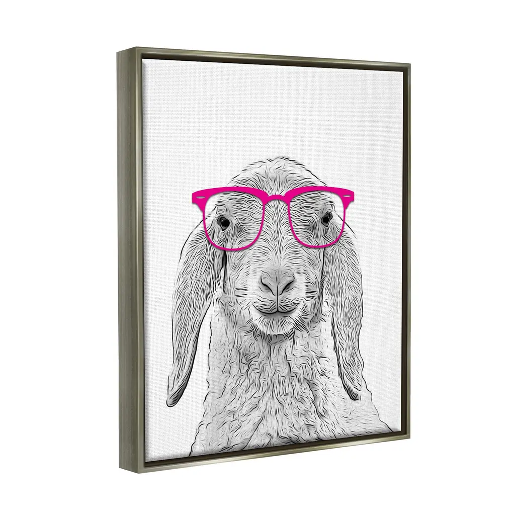Elevate your home or office to the next level with Stupell Framed Floating Canvas Wall Art. Our premium hand-stretched canvas is mounted securely into a sturdy lightweight frame. The museum-style gap between the wrapped canvas and the box frame gives the illusion of floating artwork. Stupell Wall Art is made in the USA.Features: Dimensions: 17 x 1.7 x 21 Frame, 16 x 1.5 x 20 Canvas ArtFloating Frame Sizes Include Standard: 17 x 1.7 x 21 Oversized: 25 x 1.7 x 31Wall Art is Ready to Hang - No Installation or Hardware Needed. For Easy Set Up Lean or Layer Artwork on Shelf or Against Wall.Our elevated 1.7" Thick Floating Frame is the perfect complement to our canvas style Wall Art. We use only the highest quality inks in house with industry leading printing solutions. Canvas is hand stretched over a durable wood foundation and then mounted securly into a Modern Box Frame. Made in the USA.Artwork Relates To: Glasses, Animal, Mammal, Wildlife, Sheep, Lamb, FarmDesign by Annalisa Latella