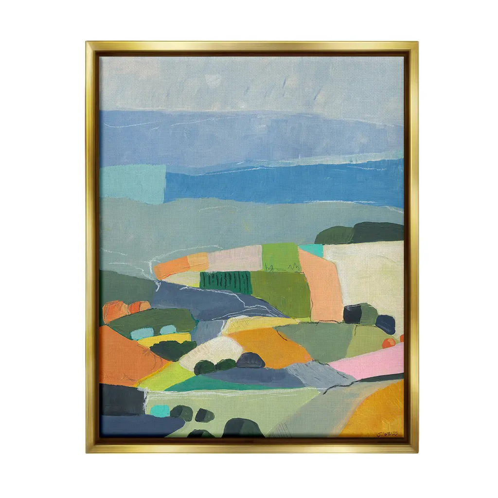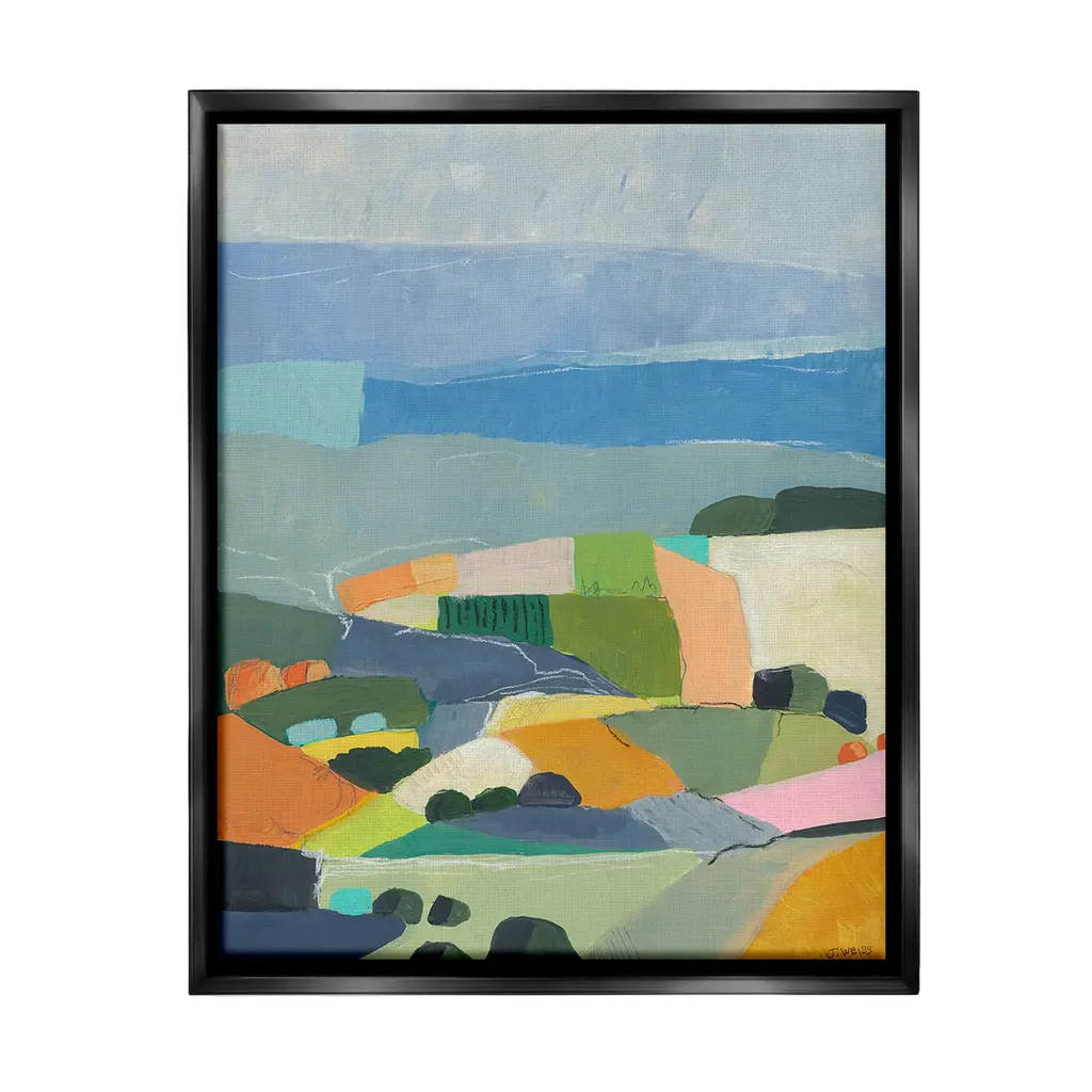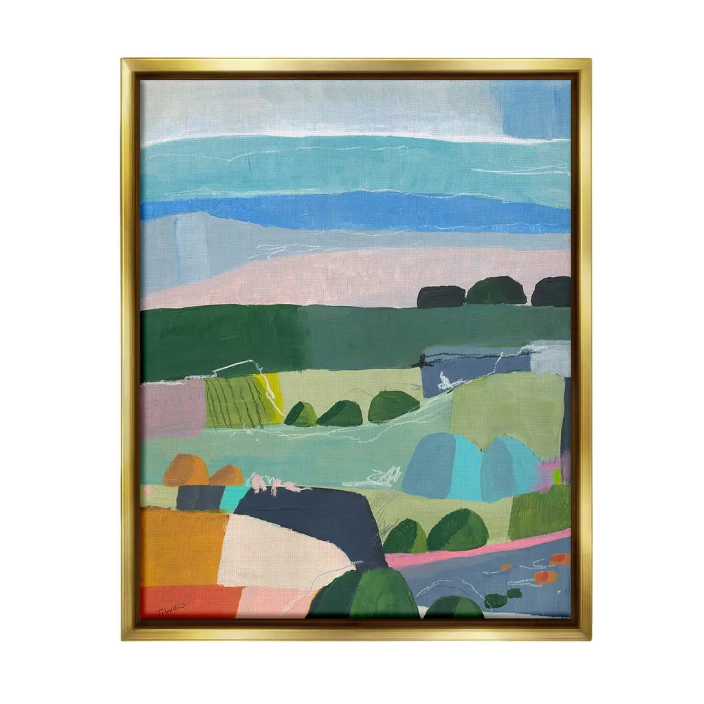 Elevate your home or office to the next level with Stupell Framed Floating Canvas Wall Art. Our premium hand-stretched canvas is mounted securely into a sturdy lightweight frame. The museum-style gap between the wrapped canvas and the box frame gives the illusion of floating artwork. Stupell Wall Art is made in the USA.Features: Dimensions: 17 x 1.7 x 21 Frame, 16 x 1.5 x 20 Canvas ArtFloating Frame Canvas Products are available in sizes 17"x21" and 25"x31". All Floating Frame Canvas Products have a 1.7" Depth.Wall Art is Ready to Hang with Hardware Free Hanging. No Installation required. For Easy Set Up Lean or Layer Artwork on Shelf or Against Wall. Artwork is Permently Fixed into the Frame.Our elevated 1.7" Thick Floating Frame is the perfect complement to our canvas style Wall Art. We use only the highest quality inks in house with industry leading printing solutions. Canvas is hand stretched over a durable wood foundation and then mounted securly into a Modern Box Frame. Made in the USA.Artwork Relates To: Painting, Modern, Abstract, Landscape, Pastel, Contemporary, Scenery, Farmland, CountryDesign by Jan Weiss