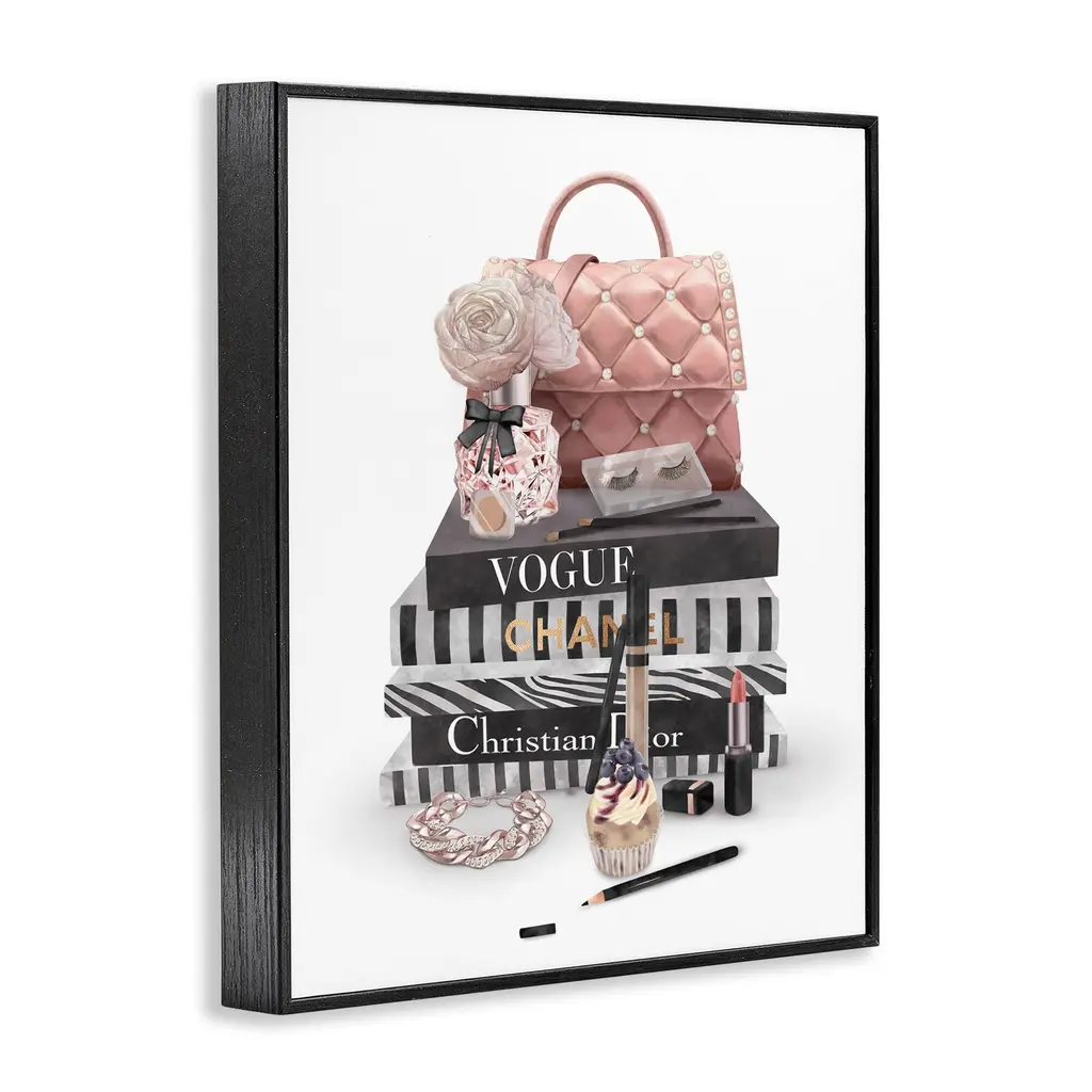 Stupell Fashion Bookstack Purse Perfume Pink Glam Design Framed Wall Art - 11 X 14 - Black