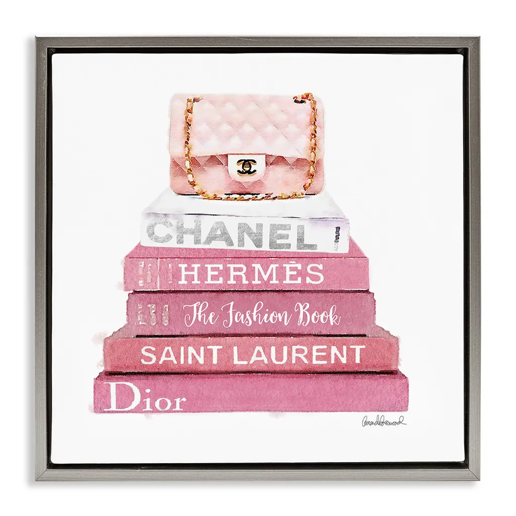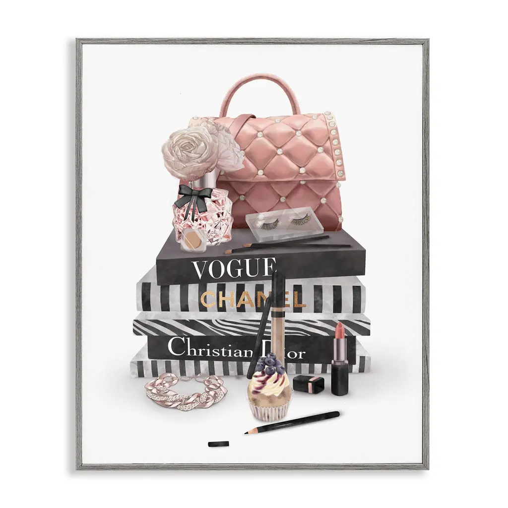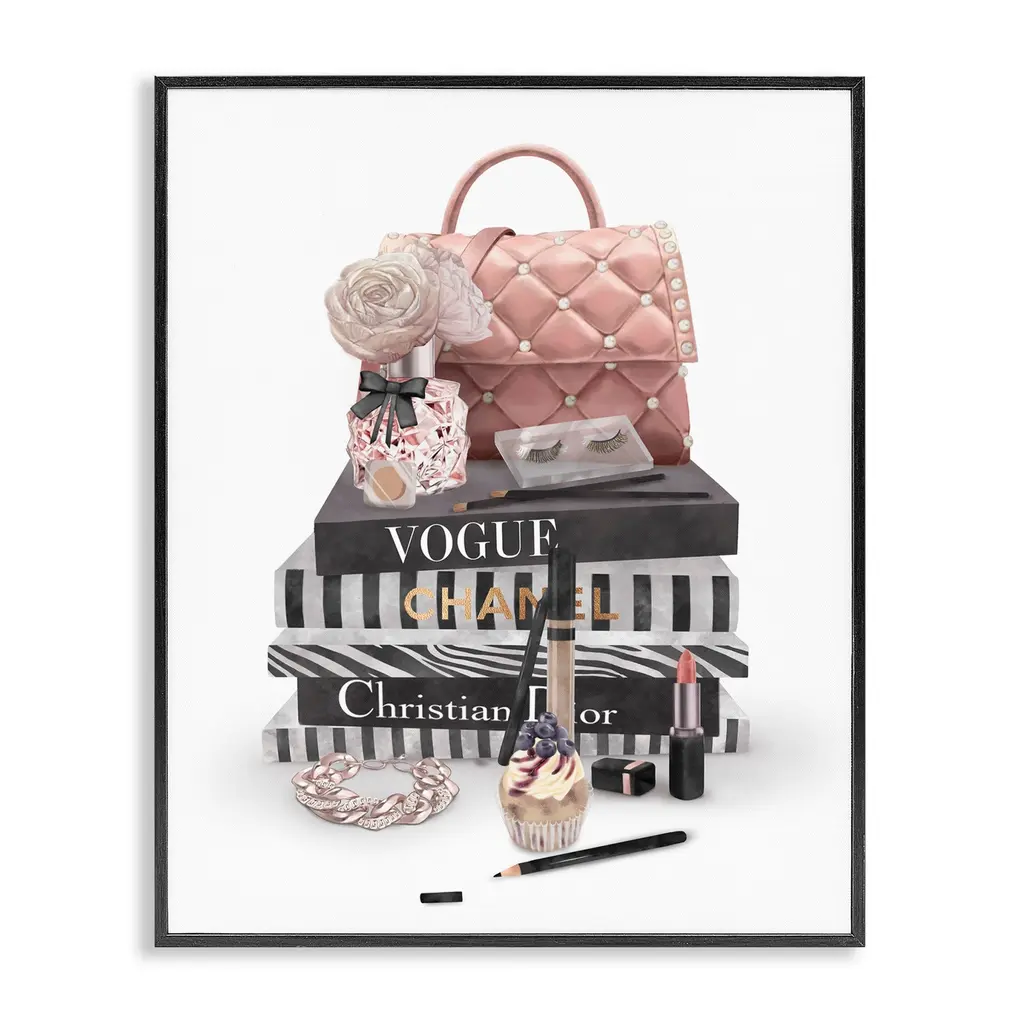 Stupell Fashion Bookstack Purse Perfume Pink Glam Design Framed Wall Art - 16 X 20 - Black