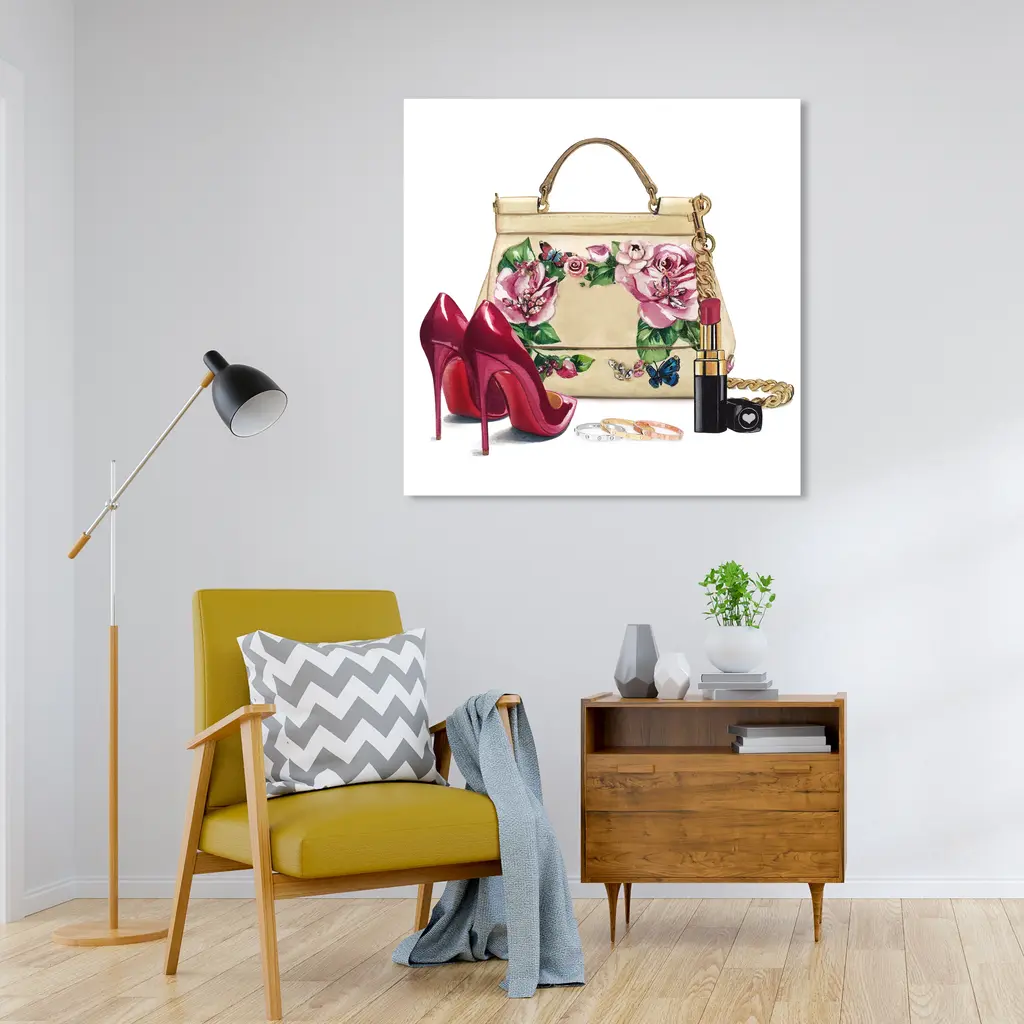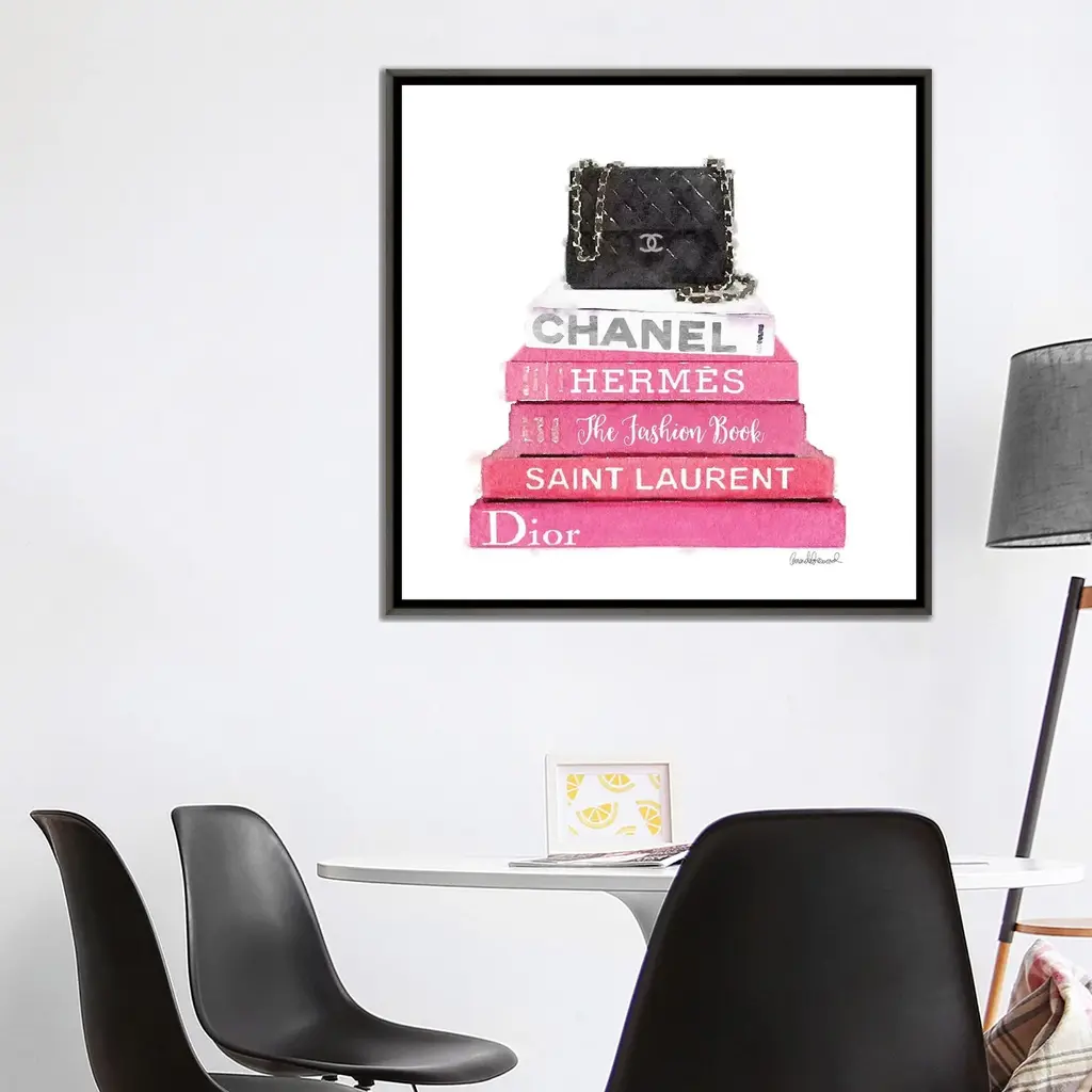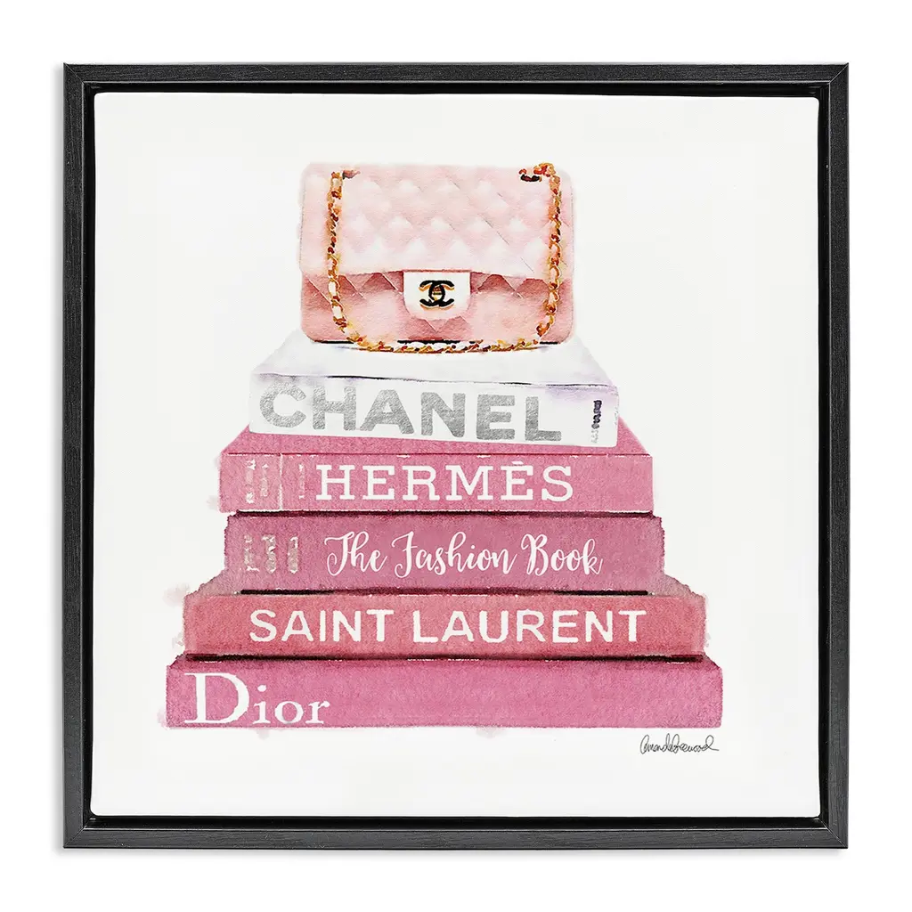 Stupell Fashion Bookstack Purse Perfume Pink Glam Design Framed Wall Art - 16 X 20 - Black