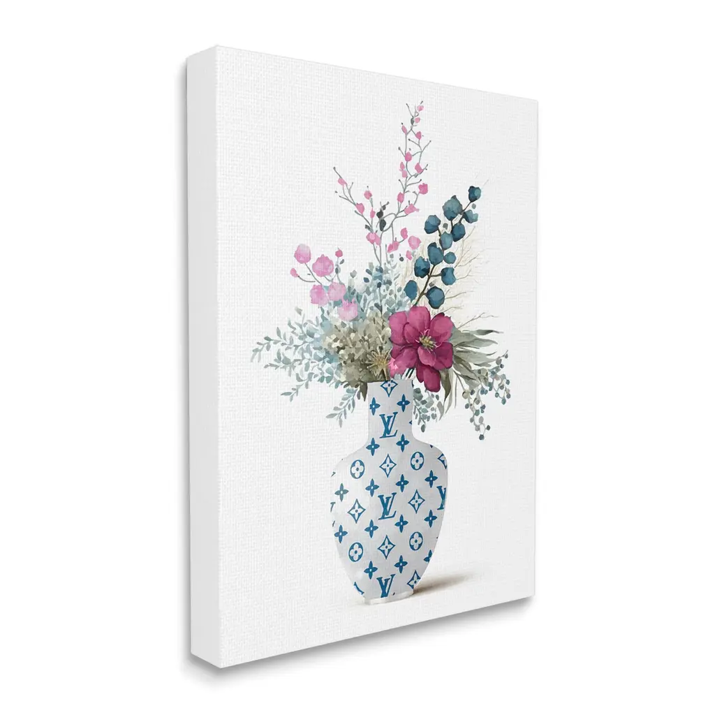 We create our stretched canvas to the highest standards. Using only the highest quality inks and canvas on Mimaki printers, we hand-cut and stretch each piece over a 1.5-inch thick wooden frame for hanging. As a result, the art comes ready to hang on the sturdy ledge with no installation required. Stupell Wall Art is made in the USA.Features: Dimensions: 16 x 1.5 x 20 InchesStretched Canvas Sizes Include Standard: 16 x 1.5 x 20 Large: 20 x 1.5 x 30 X-Large: 30 x 1.5 x 40 Oversized: 36 x 1.5 x 48Wall Art is Ready to Hang with Hardware Free Hanging. No installation required. For Easy Set Up Lean or Layer Artwork on Shelf or Against Wall.Our stretched canvas is created with the highest standards. We use only the highest quality inks and canvas on our in house Mimaki printers, and then hand cut and stretch each piece over a 1.5 inch thick wooden frame for hanging. Made In USA.Artwork Relates To: Flower, Flower Arrangement, Flower Bouquet, Pattern, Potted Plant, Floral, Glam, FashionDesign by Lil' Rue
