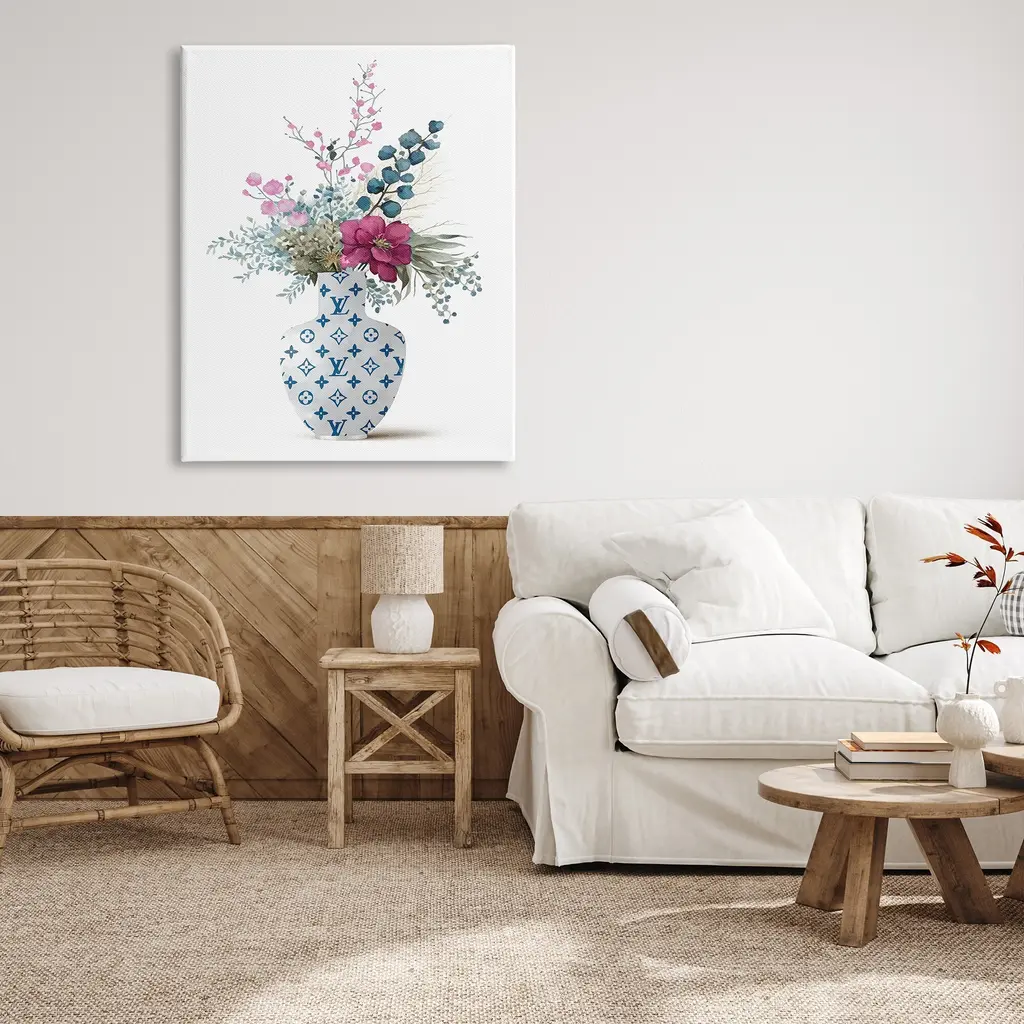 We create our stretched canvas to the highest standards. Using only the highest quality inks and canvas on Mimaki printers, we hand-cut and stretch each piece over a 1.5-inch thick wooden frame for hanging. As a result, the art comes ready to hang on the sturdy ledge with no installation required. Stupell Wall Art is made in the USA.Features: Dimensions: 16 x 1.5 x 20 InchesStretched Canvas Sizes Include Standard: 16 x 1.5 x 20 Large: 20 x 1.5 x 30 X-Large: 30 x 1.5 x 40 Oversized: 36 x 1.5 x 48Wall Art is Ready to Hang with Hardware Free Hanging. No installation required. For Easy Set Up Lean or Layer Artwork on Shelf or Against Wall.Our stretched canvas is created with the highest standards. We use only the highest quality inks and canvas on our in house Mimaki printers, and then hand cut and stretch each piece over a 1.5 inch thick wooden frame for hanging. Made In USA.Artwork Relates To: Flower, Flower Arrangement, Flower Bouquet, Pattern, Potted Plant, Floral, Glam, FashionDesign by Lil' Rue