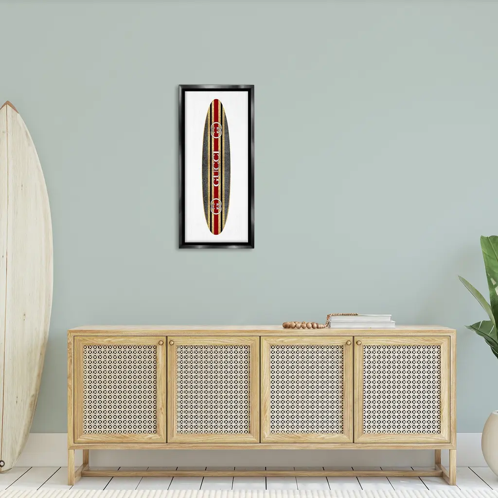 Stupell Fashion Brand Surfboard Framed Floater Canvas Wall Art Design By Madeline Blake - 14 X 31 - Black