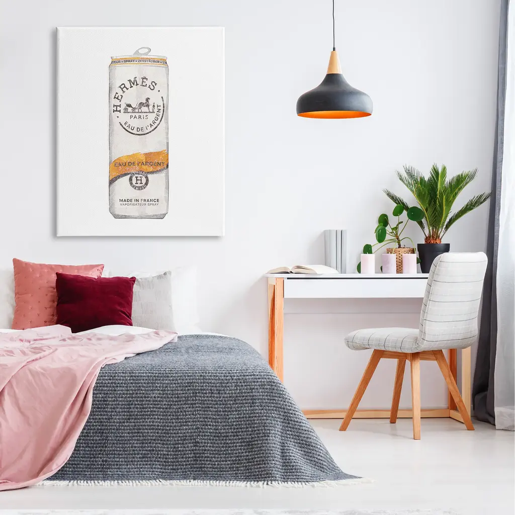 Proudly made in the USA, Our stretched canvas is created with the highest standards. We use only the highest quality inks and canvas on our in house Mimaki printers, and then hand cut and stretch each piece over a 1.5 inch thick wooden frame for hanging. The art comes ready to hang with no installation required.Features: Wall Art is Ready to Hang - No Installation or Hardware Needed. For Easy Set Up Lean or Layer Artwork on Shelf or Against Wall.Our stretched canvas is created with the highest standards. We use only the highest quality inks and canvas on our in house Mimaki printers, and then hand cut and stretch each piece over a 1.5 inch thick wooden frame for hanging. Made In USA.Artwork Relates To: Tin; Can; Bottle; Alcohol; Beverage; Drink; Aluminium; Eau de parfumDesign by Ziwei Li