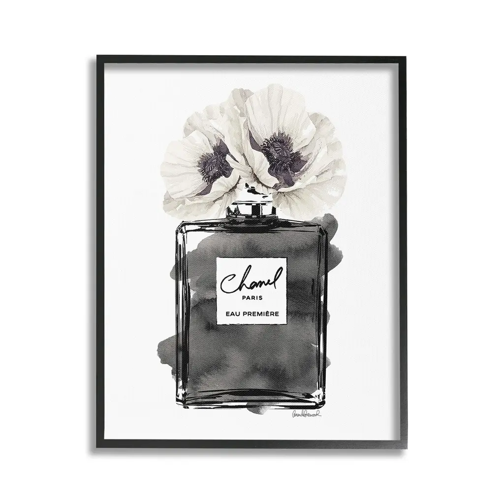 Stupell Fashion Fragrance Bottle With Florals Framed Floater Canvas Wall Art Design By Amanda Greenwood - 17 X 21 - Black
