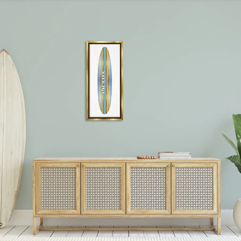 Elevate your home or office to the next level with Stupell Framed Floating Canvas Wall Art. Our premium hand-stretched canvas is mounted securely into a sturdy lightweight frame. The museum-style gap between the wrapped canvas and the box frame gives the illusion of floating artwork. Stupell Wall Art is made in the USA.Features: Dimensions: 11 x 1.7 x 25 Frame, 10 x 1.5 x 24 Canvas ArtFloating Frame Canvas Products are available in sizes 11"x25" and 14"x31". All Floating Frame Canvas Products have a 1.7" Depth.Wall Art is Ready to Hang with Hardware Free Hanging. No Installation required. For Easy Set Up Lean or Layer Artwork on Shelf or Against Wall. Artwork is Permently Fixed into the Frame.Our elevated 1.7" Thick Floating Frame is the perfect complement to our canvas style Wall Art. We use only the highest quality inks in house with industry leading printing solutions. Canvas is hand stretched over a durable wood foundation and then mounted securly into a Modern Box Frame. Made in the USA.Artwork Relates To: Nautical, Sport, Surfing, Surfboard, Glam, Fashion, Pattern, Logo, DesignerDesign by Madeline Blake