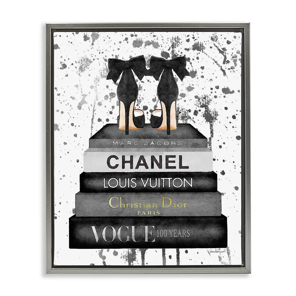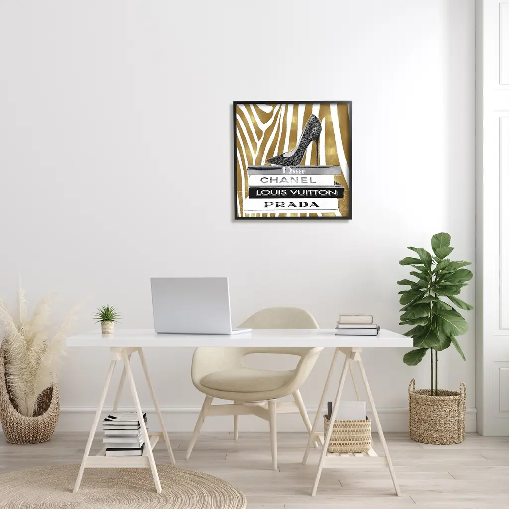 Stupell Fashion High Heel Bookstack Glam Gold Zebra Print Framed Wall Art, 12 X 12 - Black - 24 X 24 - Wood - Black