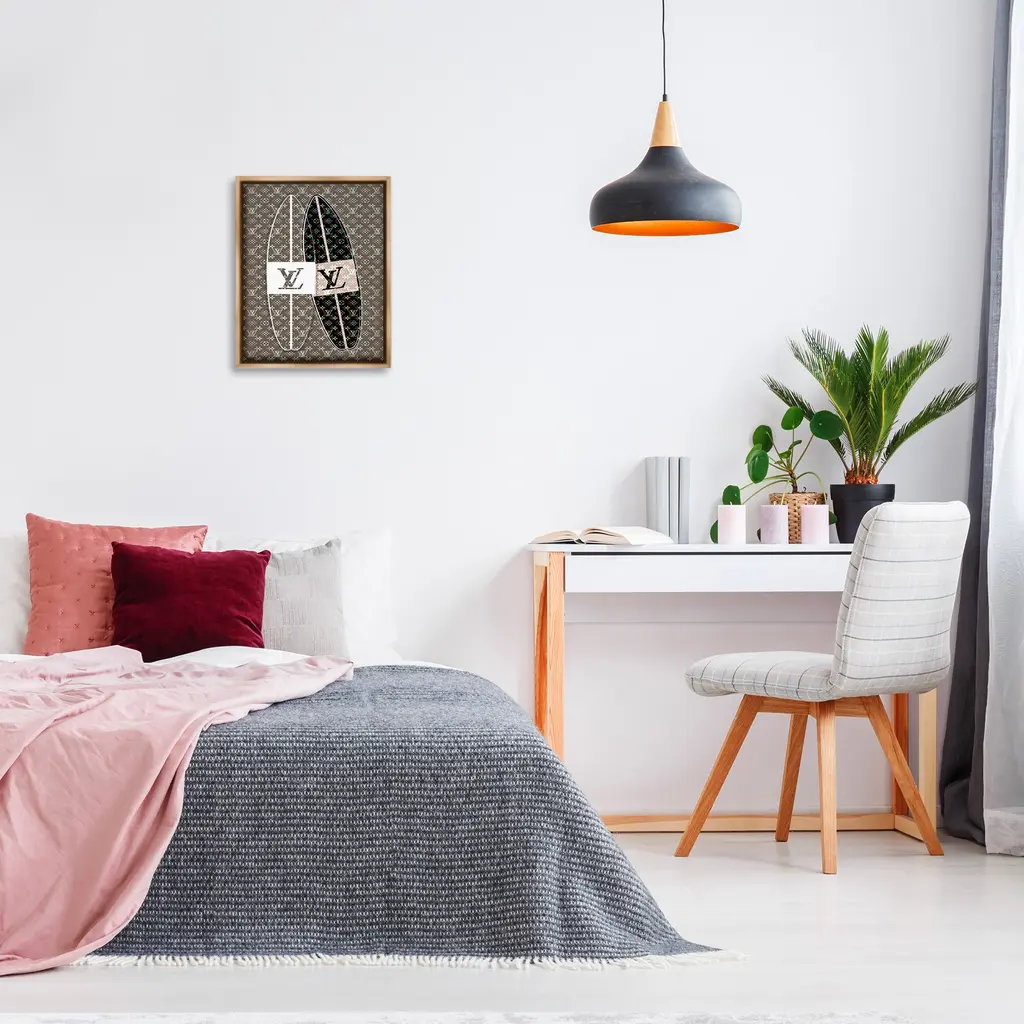 Elevate your home or office to the next level with Stupell Framed Floating Canvas Wall Art. Our premium hand-stretched canvas is mounted securely into a sturdy lightweight frame. The museum-style gap between the wrapped canvas and the box frame gives the illusion of floating artwork. Stupell Wall Art is made in the USA.Features: Dimensions: 17 x 1.7 x 21 Frame, 16 x 1.5 x 20 Canvas ArtFloating Frame Canvas Products are available in sizes 17"x21" and 25"x31". All Floating Frame Canvas Products have a 1.7" Depth.Wall Art is Ready to Hang with Hardware Free Hanging. No Installation required. For Easy Set Up Lean or Layer Artwork on Shelf or Against Wall. Artwork is Permently Fixed into the Frame.Our elevated 1.7" Thick Floating Frame is the perfect complement to our canvas style Wall Art. We use only the highest quality inks in house with industry leading printing solutions. Canvas is hand stretched over a durable wood foundation and then mounted securly into a Modern Box Frame. Made in the USA.Artwork Relates To: Glam, Fashion, Pattern, Surf, Nautical, Surfboard, LogoDesign by Martina Pavlova
