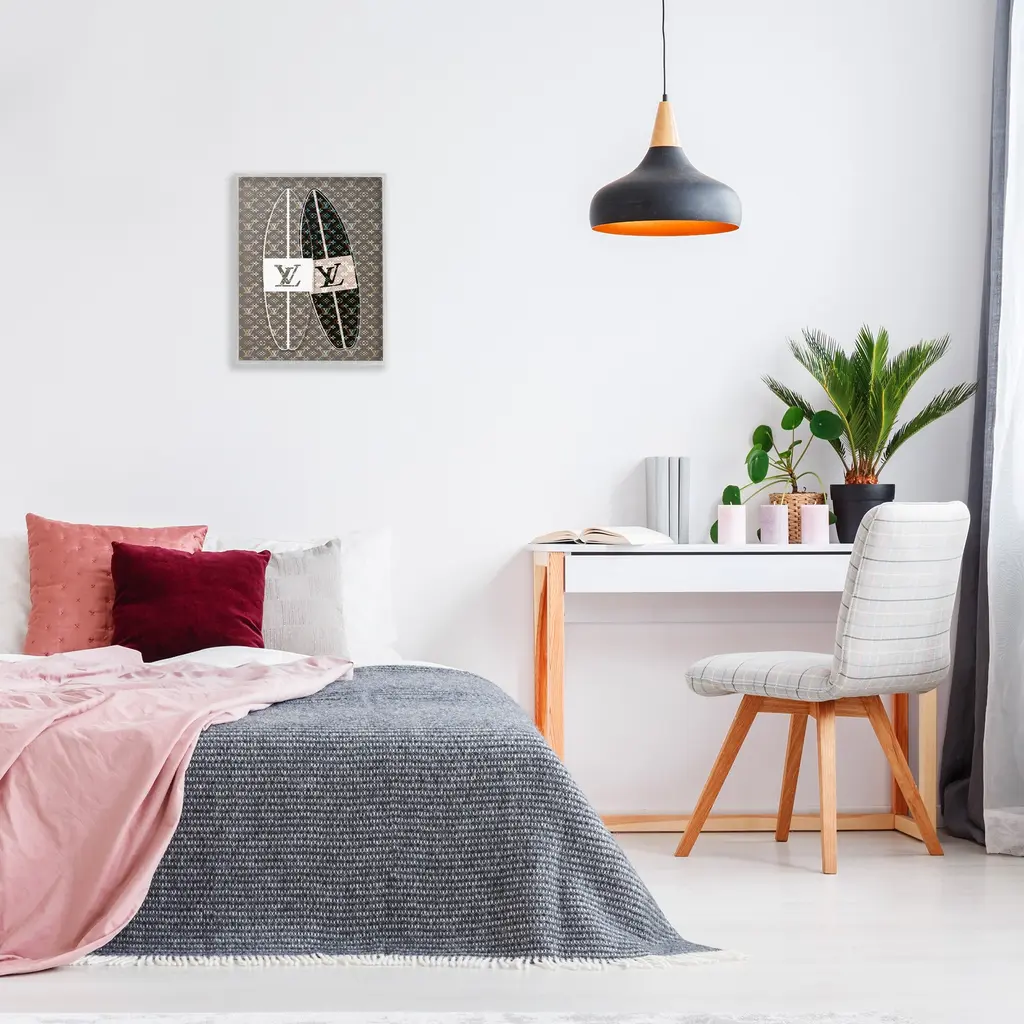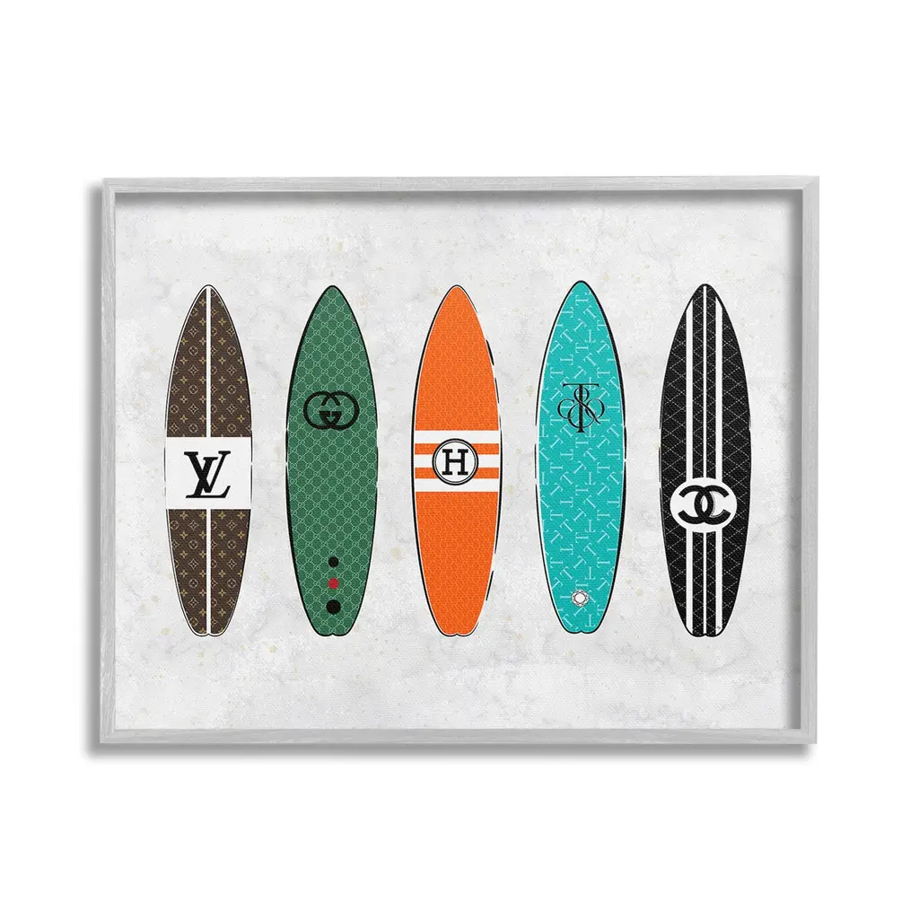 Add dimension to any room with our textured Framed Giclee Artwork. Our framed artwork is securely mounted into a 1.5-inch thick wood grain frame and ready to hang. Frames are available in three alluring styles: black, gray farmhouse and white. In addition, you should check out our oversized options if you want a statement piece. Stupell Wall Art is made in the USA.Features: Dimensions: 11 x 1.5 x 14 FramedFramed Giclee Products are available in the sizes 11"x14", 16"x20" or 24"x30". All Framed Giclee Products have a 1.5" Depth. Wall Art is Ready to Hang with Hardware Free Hanging. No installation required. For Easy Set Up Lean or Layer Artwork on Shelf or Against Wall.Our giclée prints are carefully mounted on a durable MDF backing, and then perfectly finished in a 1.5 inch thick woodgrain frame. Mounted frame colors include black, gray farmhouse and white. Made In USA.Artwork Relates To: Glam, Fashion, Pattern, Surf, Nautical, Surfboard, LogoDesign by Martina Pavlova