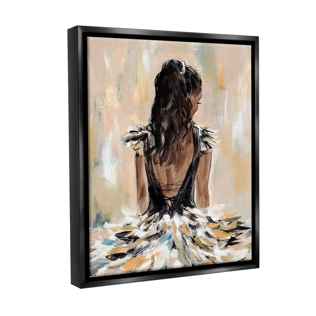 Elevate your home or office to the next level with Stupell Framed Floating Canvas Wall Art. Our premium hand-stretched canvas is mounted securely into a sturdy lightweight frame. The museum-style gap between the wrapped canvas and the box frame gives the illusion of floating artwork. Stupell Wall Art is made in the USA.Features: Dimensions: 17 x 1.7 x 21 Frame, 16 x 1.5 x 20 Canvas ArtFloating Frame Canvas Products are available in sizes 17"x21" and 25"x31". All Floating Frame Canvas Products have a 1.7" Depth.Wall Art is Ready to Hang with Hardware Free Hanging. No Installation required. For Easy Set Up Lean or Layer Artwork on Shelf or Against Wall. Artwork is Permently Fixed into the Frame.Our elevated 1.7" Thick Floating Frame is the perfect complement to our canvas style Wall Art. We use only the highest quality inks in house with industry leading printing solutions. Canvas is hand stretched over a durable wood foundation and then mounted securly into a Modern Box Frame. Made in the USA.Artwork Relates To: Modern, Back, Person, Female, Woman, Fashion, Dress, Gown, Dancer, Ballerina, AbstractDesign by Annie Warren