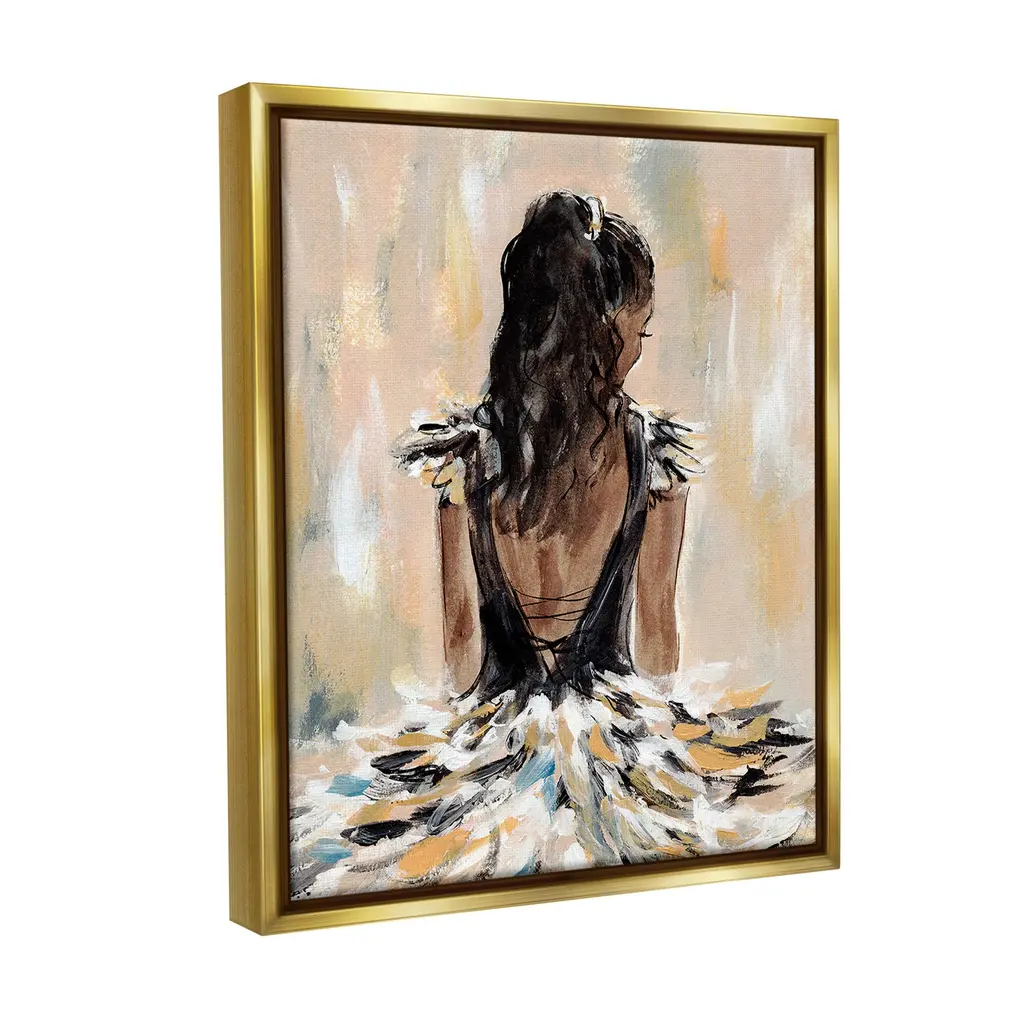 Elevate your home or office to the next level with Stupell Framed Floating Canvas Wall Art. Our premium hand-stretched canvas is mounted securely into a sturdy lightweight frame. The museum-style gap between the wrapped canvas and the box frame gives the illusion of floating artwork. Stupell Wall Art is made in the USA.Features: Dimensions: 17 x 1.7 x 21 Frame, 16 x 1.5 x 20 Canvas ArtFloating Frame Canvas Products are available in sizes 17"x21" and 25"x31". All Floating Frame Canvas Products have a 1.7" Depth.Wall Art is Ready to Hang with Hardware Free Hanging. No Installation required. For Easy Set Up Lean or Layer Artwork on Shelf or Against Wall. Artwork is Permently Fixed into the Frame.Our elevated 1.7" Thick Floating Frame is the perfect complement to our canvas style Wall Art. We use only the highest quality inks in house with industry leading printing solutions. Canvas is hand stretched over a durable wood foundation and then mounted securly into a Modern Box Frame. Made in the USA.Artwork Relates To: Modern, Back, Person, Female, Woman, Fashion, Dress, Gown, Dancer, Ballerina, AbstractDesign by Annie Warren