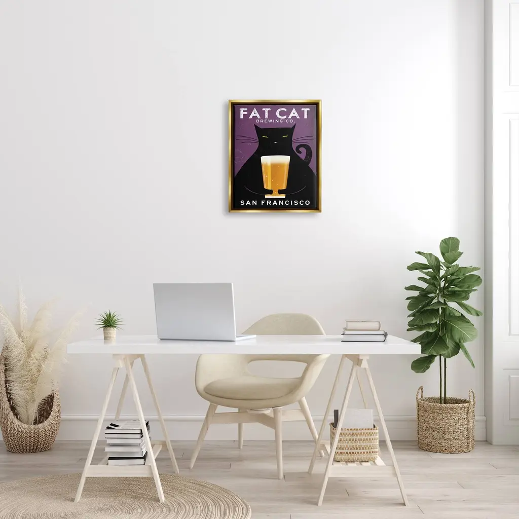 Elevate your home or office to the next level with Stupell Framed Floating Canvas Wall Art. Our premium hand stretched canvas is mounted securly into a sturdy lightweight frame. The museum style gap between wrapped canvas and box frame gives the illusion of floating artwork.Features:Floating Frame Sizes IncludeStandard: 21 x 1.7 x 17Oversized: 31 x 1.7 x 25Wall Art is Ready to Hang - No Installation or Hardware Needed. For Easy Set Up Lean or Layer Artwork on Shelf or Against Wall.Artwork Relates To: Beer, Alcohol, Beverage, Drink, Glass, Beer Glass, Lager, Cat, AnimalOur elevated 1.7" Thick Floating Frame is the perfect complement to our canvas style Wall Art. We use only the highest quality inks in house with industry leading printing solutions. Canvas is hand stretched over a durable wood foundation and then mounted securly into a Modern Box Frame. Made in the USA.Design by Ryan Fowler